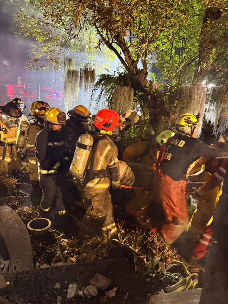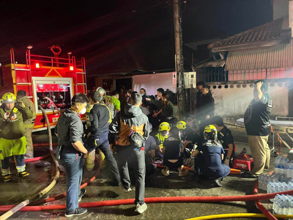 เมื่อเจ้าหน้าที่ไปถึงจุดที่เกิดเหตุ พบเพลิงกำลังลุกไหม้อย่างรุนแรงและขยายวงกว้าง ได้รับแจ้งว่ามีผู้ติดค้างอยู่ภายในบ้านจำนวน 5 ราย เจ้าหน้าที่ผจญเพลิงจึงเร่งเข้าค้นหาผู้ประสบเหตุ ท่ามกลางควันและเปลวไฟ ก่อนจะสามารถนำผู้ติดค้างออกจากตัวบ้านได้ทั้งหมด โดยผู้ประสบเหตุทั้ง 5 รายอยู่ในสภาพหมดสติ