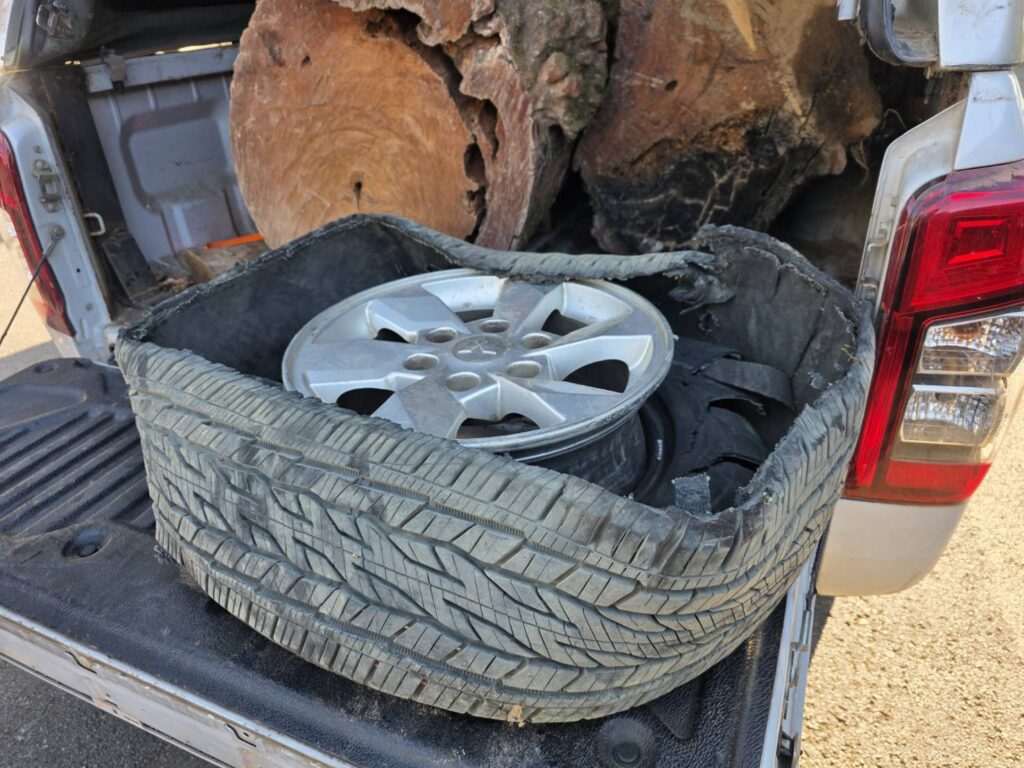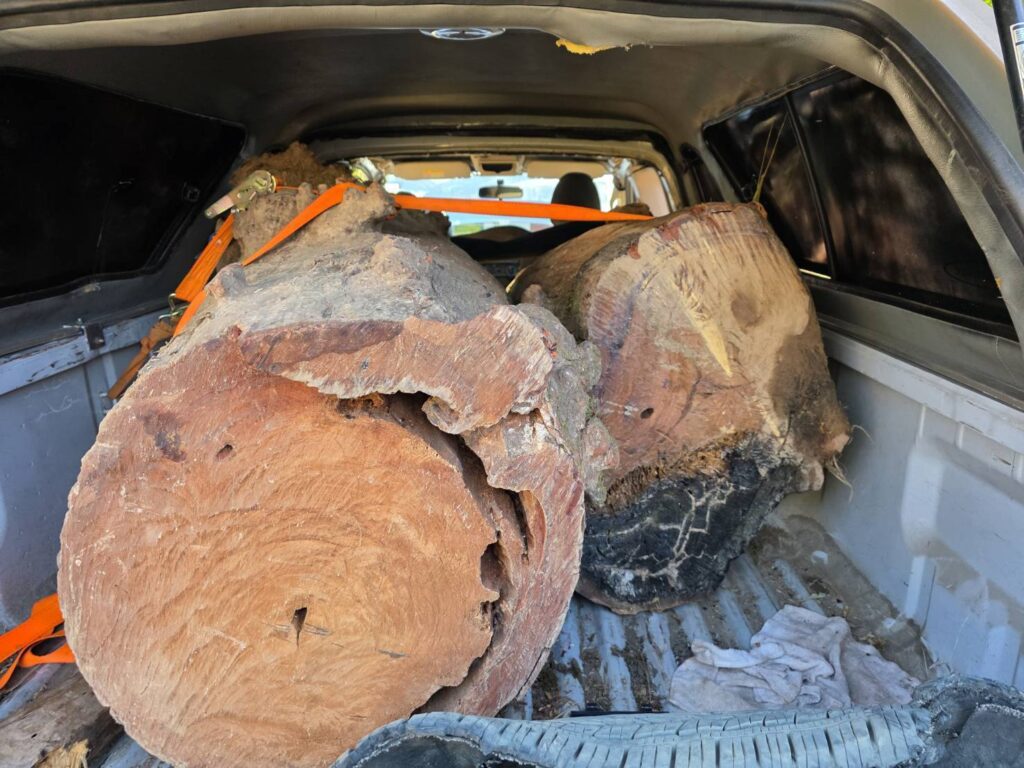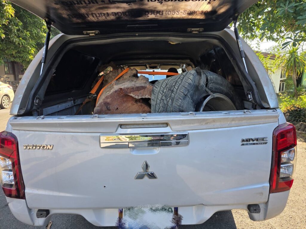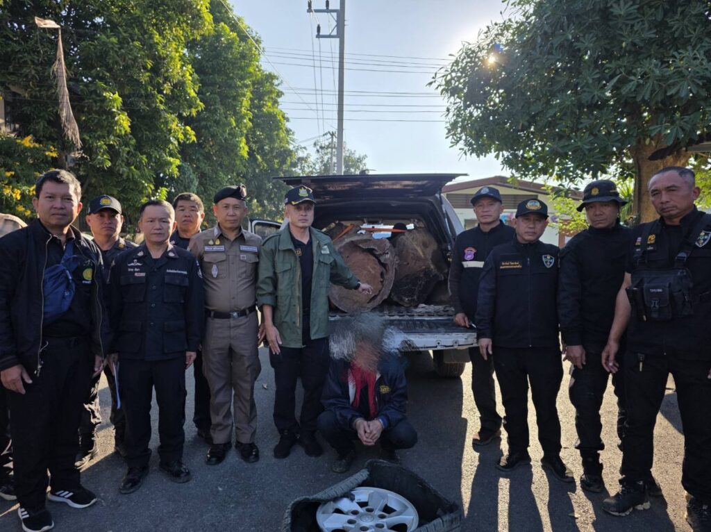 พร้อมของกลางหลายรายการดังนี้ 1.ไม้กระยาเลย(ประดู่) จำนวน 2 ท่อน ปริมาตร 1.462 ลบ.ม.คิดเป็นมูลค่าความเสียหายของรัฐ 51,170- บาท และยึดรถยนต์กระบะ Mitsubishi Triton สีขาว ทะเบียน บย 1139 แพร่ ของกลางจำนวน 1 คันโทรศัพท์มือถือ จำนวน 1 เครื่อง