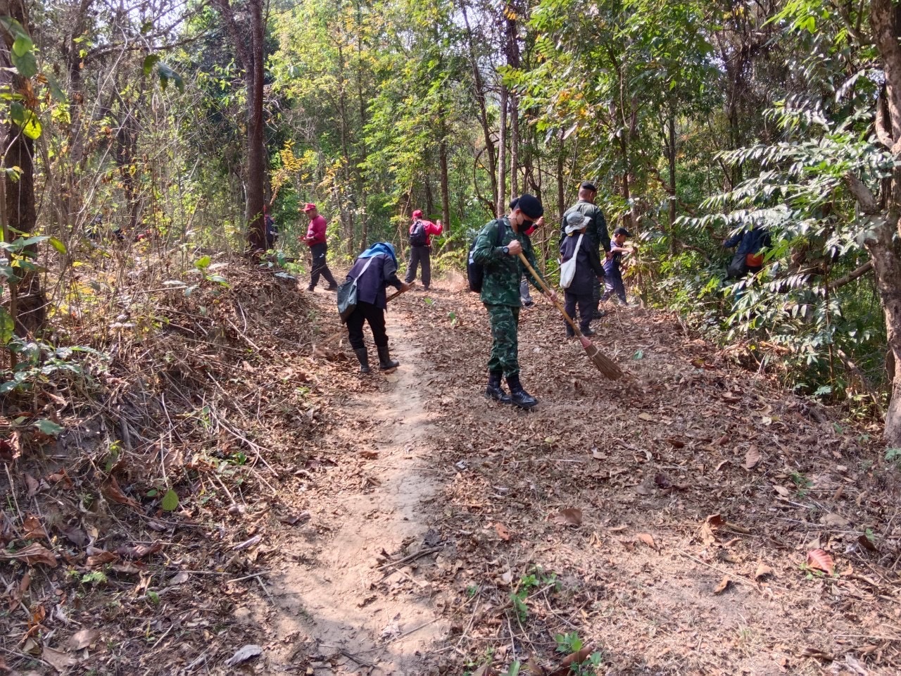 เมื่อวันที่ 8 ก.พ. 68 เวลา 08.30 น. กกล.ผาเมือง โดย ชป.กร.312 กกล.ผาเมือง ร่วมกับ สถานีควบคุมไฟป่าดอยแม่สลอง, ผู้นำชุมชน และประชาชน บ.ห้วยก้างปลา จัดกิจกรรมขับเคลื่อนเครือข่ายการมีส่วนร่วม โดยการทำแนวกันไฟ ระยะทางประมาณ 3 กม. ตามแผนปฏิบัติการป้องกันภัยชุมชน ต.ป่าตึง ด้านการป้องกันแก้ไขการลักลอบทำลายทรัพยากรป่าไม้ มีผู้เข้าร่วมกิจกรรม 50 คน ณ ป่าชุมชน บ.ห้วยก้างปลา ม.15 ต.ป่าตึง อ.แม่จัน จว.ช.ร.