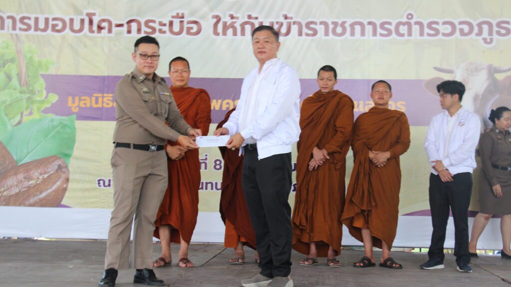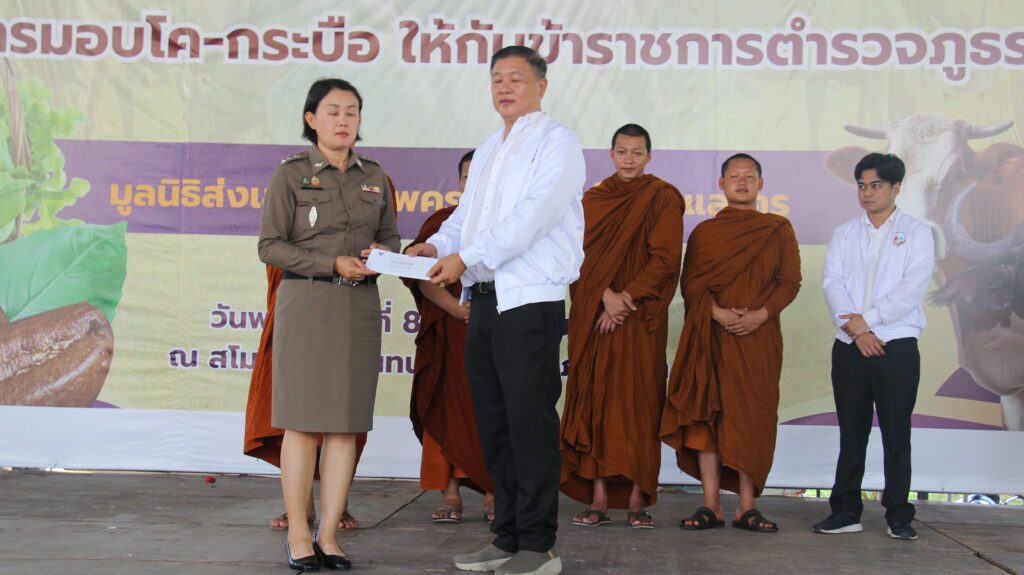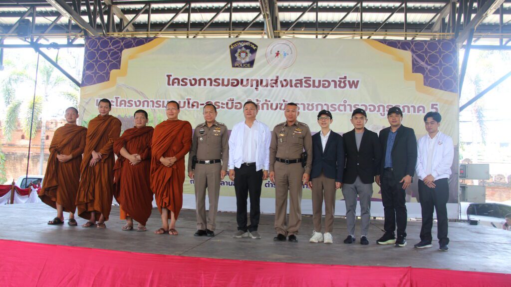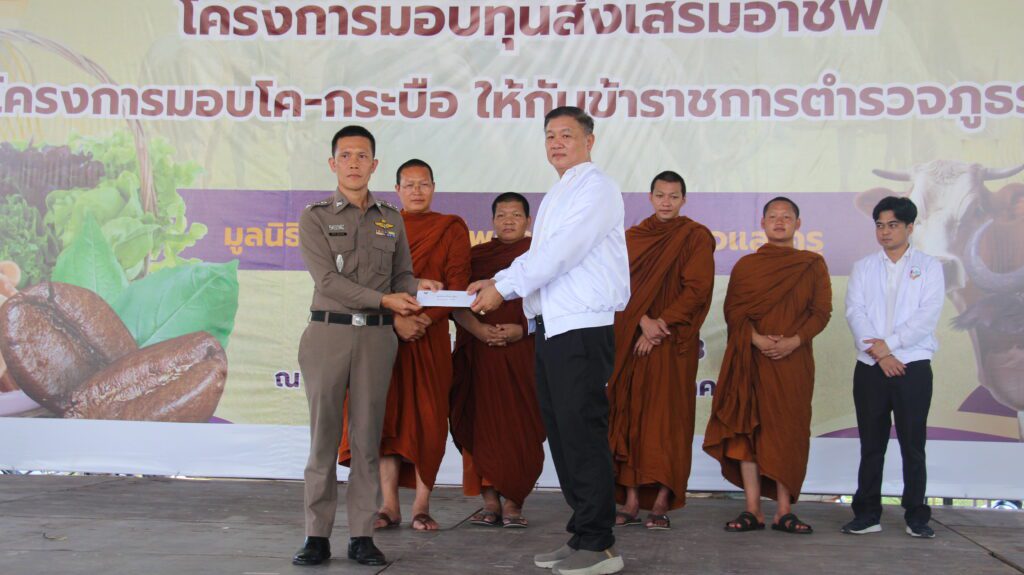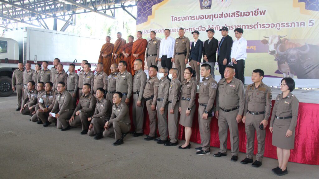 โดยมูลนิธิส่งเสริมอาชีพครอบครัวตำรวจและครูได้ดำเนินโครงการมอบทุนส่งเสริมอาชีพและโครงการมอบโค-กระบือให้กับข้าราชการตำรวจในสังกัด ภ.5 โดยมีวัตถุประสงค์เพื่อให้ข้าราชการตำรวจในสังกัด ภ.5 มีอาชีพเสริม เพิ่มพูนรายได้ และพัฒนาคุณภาพชีวิตตามหลักเศรษฐกิจพอเพียง ซึ่งในวันนี้ได้มีพิธีมอบทุนส่งเสริมอาชีพ และรับมอบโค – กระบือ ให้กับข้าราชการตำรวจในสังกัดตำรวจภูธรภาค 5 ที่ผ่านการคัดเลือกจากมูลนิธิฯ เข้าร่วมพิธีฯ ในครั้งนี้ รวมทั้งหมดจำนวน 29 นาย (ภ.จว.เชียงใหม่ 16 นาย, ภ.จว.พะเยา 4 นาย,ศฝร.ภ.5 3 นาย, ภ.จว.น่าน /ภ.จว.แพร่/ภ.จว.ลำปาง/ภ.จว.ลำพูน/บก.สส.ภ.5 และ บก.อก.ภ.5 หน่วยละ 1นาย)