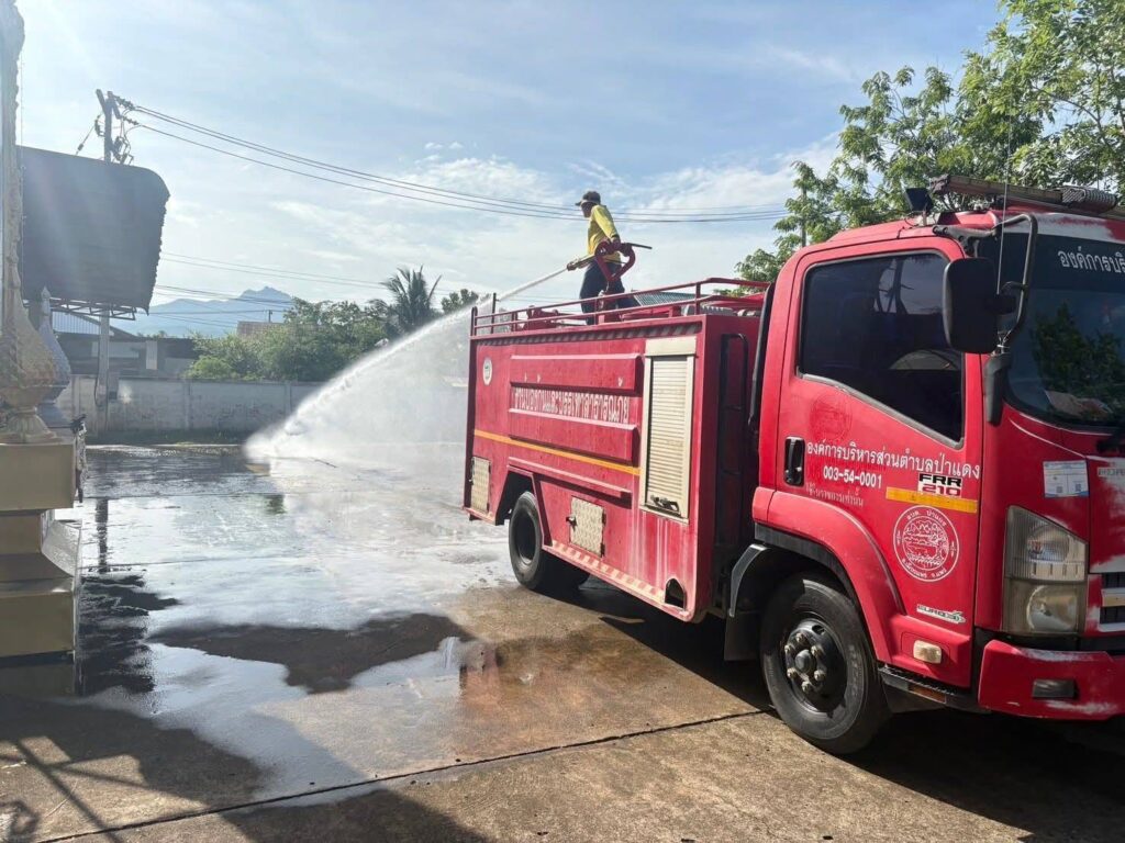 เมื่อวันที่ 7 กรกฎาคม 2568 นายวิทยา กันกา นายกองค์การบริหารส่วนตำบลป่าแดง มอบหมายให้เจ้าหน้าที่งานป้องกันและบรรเทาสาธารณภัย องค์การบริหารส่วนตำบลป่าแดง นำรถดับเพลิงออกปฏิบัติภารกิจฉีดล้างทำความสะอาดบริเวณวัดและพื้นที่สาธารณะ เพื่อดูแลสิ่งแวดล้อมให้สะอาดเรียบร้อย พร้อมรองรับกิจกรรมของชาวชุมชนอย่างสมพระเกียรติ