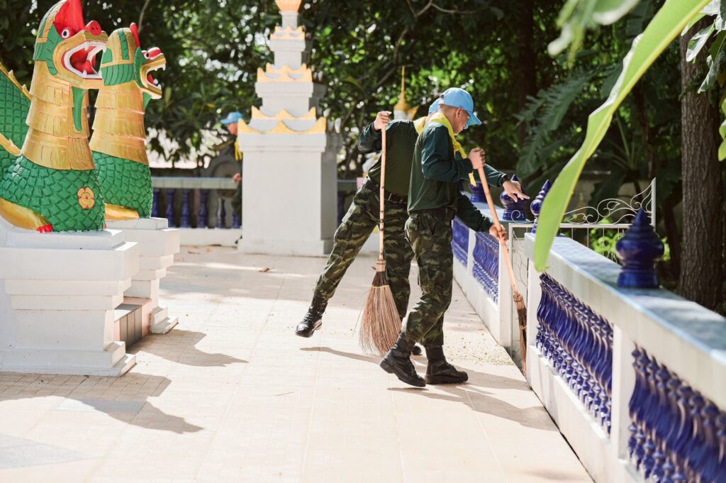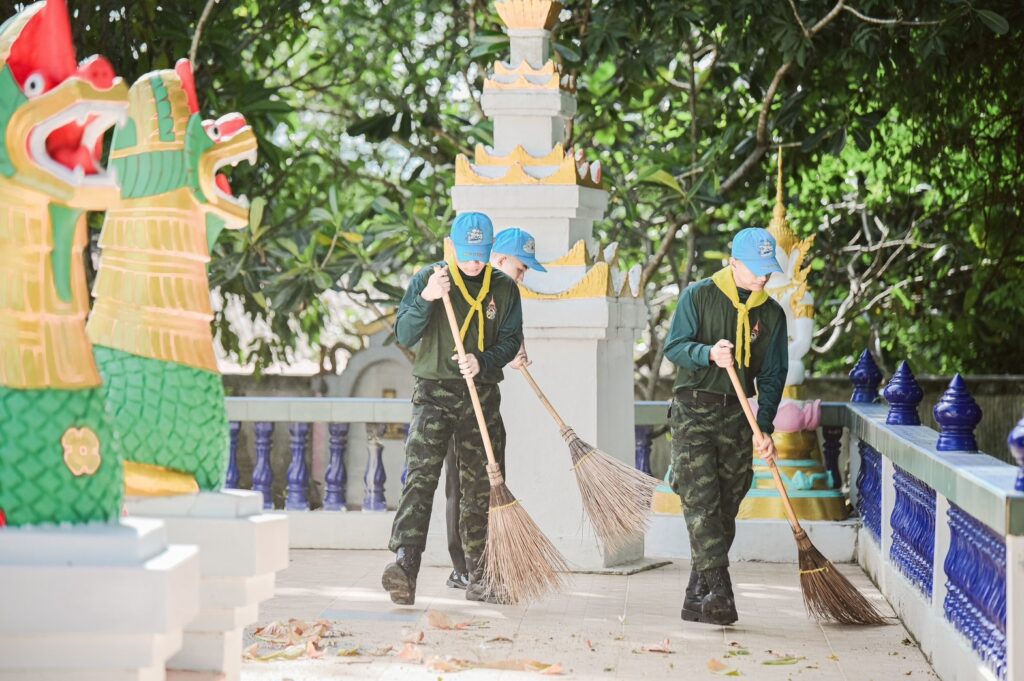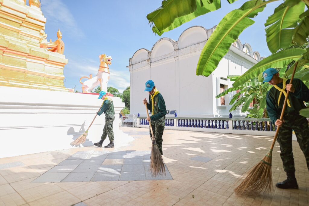จากนั้น กองพันทหารปืนใหญ่ที่ 17 กรมทหารปืนใหญ่ที่ 4 ได้นำกำลังพลจิตอาสาพระราชทาน ดำเนินกิจกรรม จิตอาสาพัฒนาวัด โดยได้บำเพ็ญสาธารณประโยชน์ ทำความสะอาด และปรับปรุงภูมิทัศน์โดยรอบ เพื่อเตรียมสถานที่สำหรับจัดกิจกรรมเวียนเทียน เนื่องในวันอาสาฬหบูชา ณ วัดศรีจอมเรือง อำเภอเมือง จังหวัดพะเยา