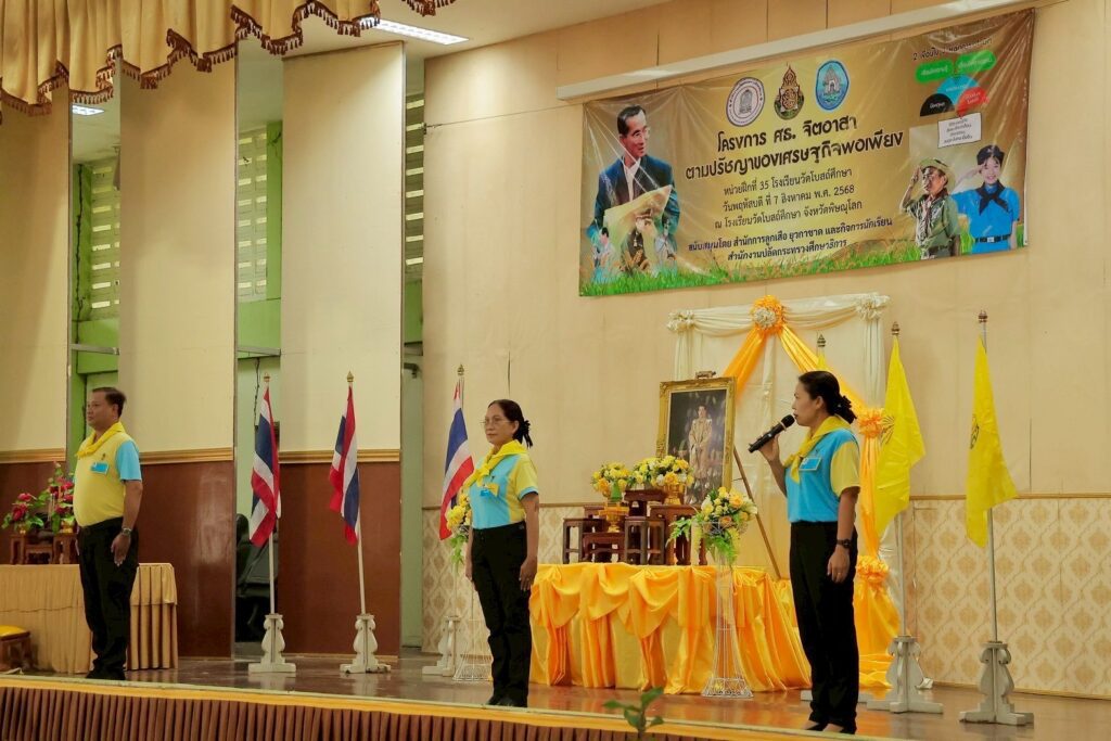 พิษณุโลก-จิตอาสา 904 ภาค 3 ร่วมบรรยายให้ความรู้ หัวข้อ ” สถาบันพระมหากษัตริย์กับประเทศไทย“ ในกิจกรรม ม“ ศธ. จิตอาสา ตามปรัชญาของเศรษฐกิจพอเพียงพอ ให้กับ ลูกเสือ เนตรนารี ยุวกาชาด สถานศึกษาในพื้นที่จังหวัดพิษณุโลก