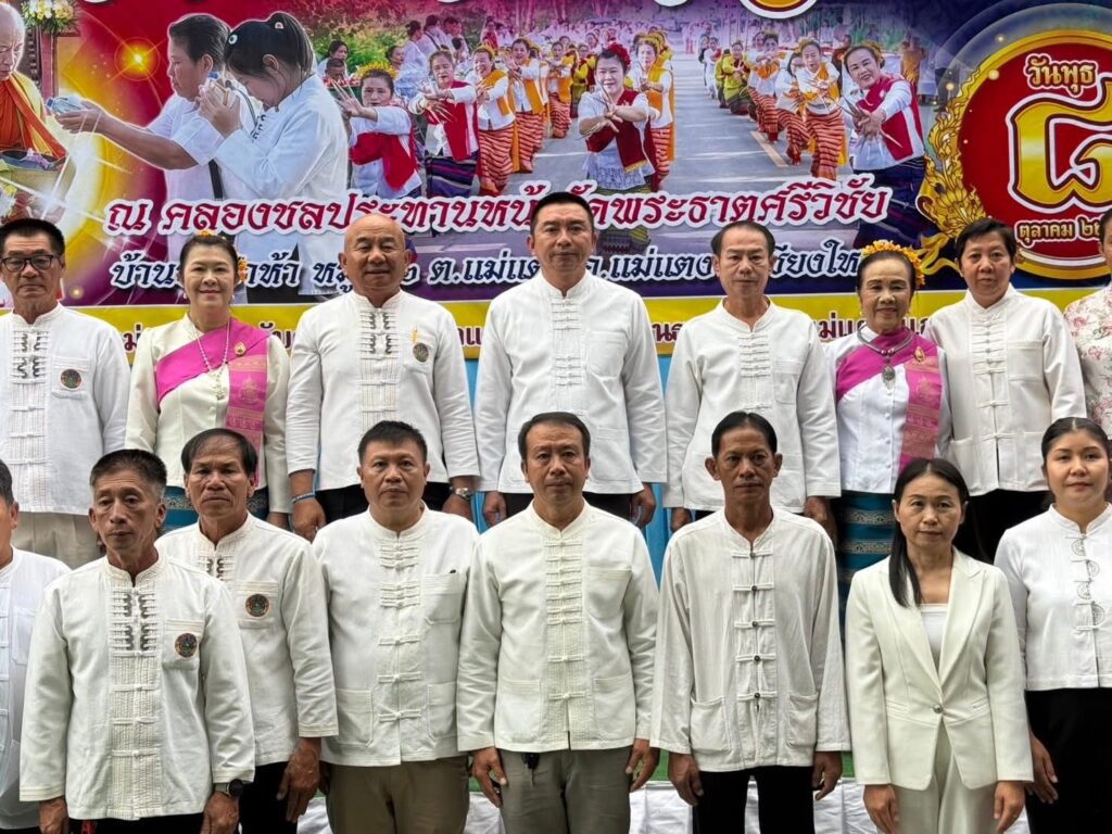 โดยมี หัวหน้าส่วนราชการ, ฝ่ายปกครองตำบลแม่แตง, เจ้าหน้าที่และบุคลากรเทศบาลตำบลแม่แตง, คณะสงฆ์อำเภอแม่แตงและประชาชนในพื้นที่ร่วมพิธีในครั้งนี้ ณ วัดพระธาตุศรีวิชัย ตำบลแม่แตง อำเภอแม่แตง จังหวัดเชียงใหม่