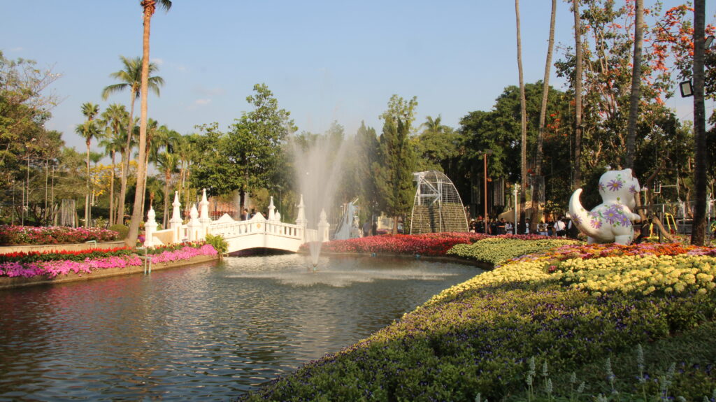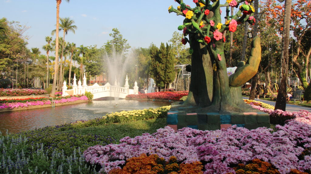 สำหรับไฮไลต์ในปีนี้ ทางเทศบาลได้เร่งเนรมิตพื้นที่สวนสาธารณะหนองบวกหาดด้วยดอกไม้นานาพันธุ์กว่า 170,000 ต้น จาก 52 สายพันธุ์ โดยเน้นการจัดแสดงที่ผสมผสานศิลปวัฒนธรรมล้านนากับนวัตกรรมการตกแต่งสวนสมัยใหม่ เริ่มตั้งแต่โซน “บุปผาราชินี” (Queen’s Blossoms Pavilion) ที่จัดแสดงกล้วยไม้พันธุ์หวายโทนสีม่วง-เขียว สะท้อนภาพพระราชกรณียกิจด้านการอนุรักษ์ธรรมชาติ ต่อเนื่องไปยังโซนครอบครัวและเด็กๆ (Kids & Family Garden) ที่เต็มไปด้วยสีสันของดอกไม้และหุ่นไดโนเสาร์ รวมถึงประติมากรรมโคมไฟ 12 นักษัตร นอกจากนี้ยังมีโซนกลางสวนอย่าง Lily & Lotus Light Garden ที่โดดเด่นด้วยดอกลิลลี่และโคมไฟดอกบัว และโซน Premium Flower Garden ที่รวบรวมไม้ดอกพรีเมียม อาทิ ทิวลิป และไฮเดรนเยีย พร้อมอุโมงค์ดอกไม้ที่สวยงามทั้งกลางวันและกลางคืน