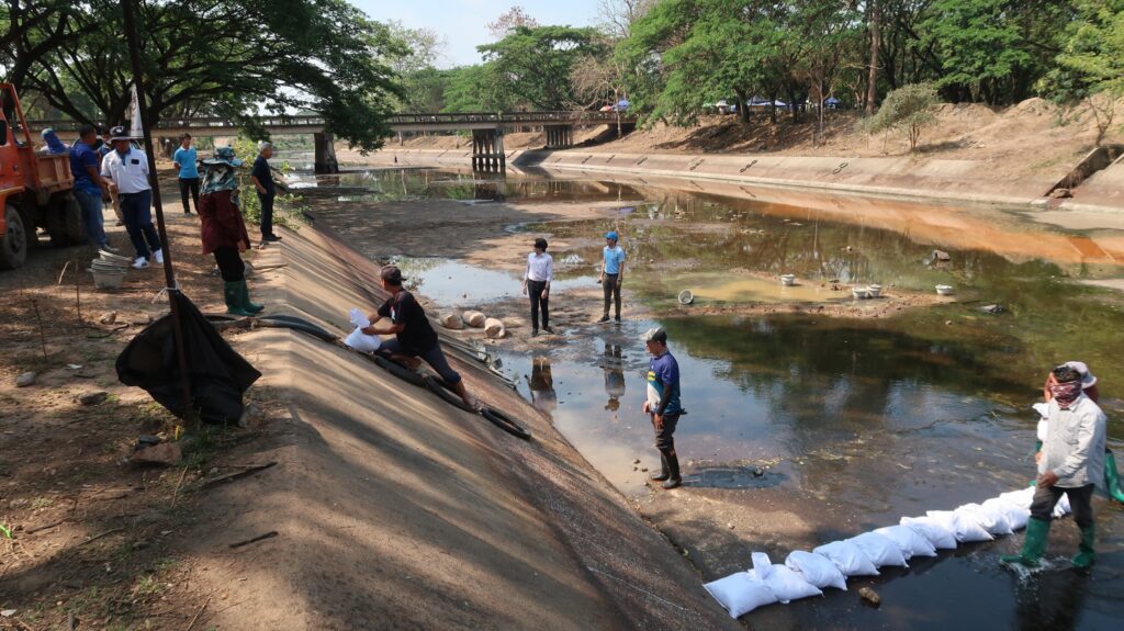 เมื่อวันที่ 8 เมษายน 2568 เวลา 09.30 น. นายธีรพันธ์ เด็ดขาด หัวหน้าฝ่ายวิศวกรรม รักษาการในตำแหน่งผู้อำนวยการโครงการส่งน้ำและบำรุงรักษาแม่กวงอุดมธารา พร้อมด้วย นายอนุรักษ์ เปี้ยกาวี หัวหน้าฝ่ายช่างกล นายคมสัน วัดเข่ง หัวหน้าฝ่ายส่งน้ำและบำรุงรักษาที่ 1 และเจ้าหน้าที่โครงการฯ ลงพื้นที่ทำการสำรวจ ตรวจสอบบริเวณพื้นคลองส่งน้ำท้ายอุโมงค์เขื่อนหลัก เขื่อนแม่กวงอุดมธารา เพื่ออำนวยความสะดวกให้กับประชาชนในช่วงเทศกาลสงกรานต์