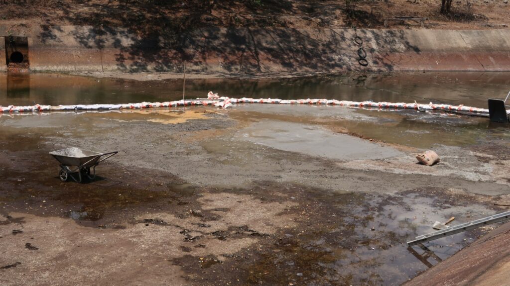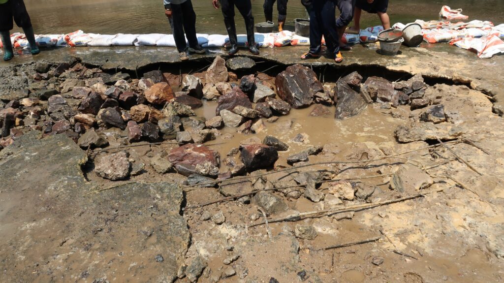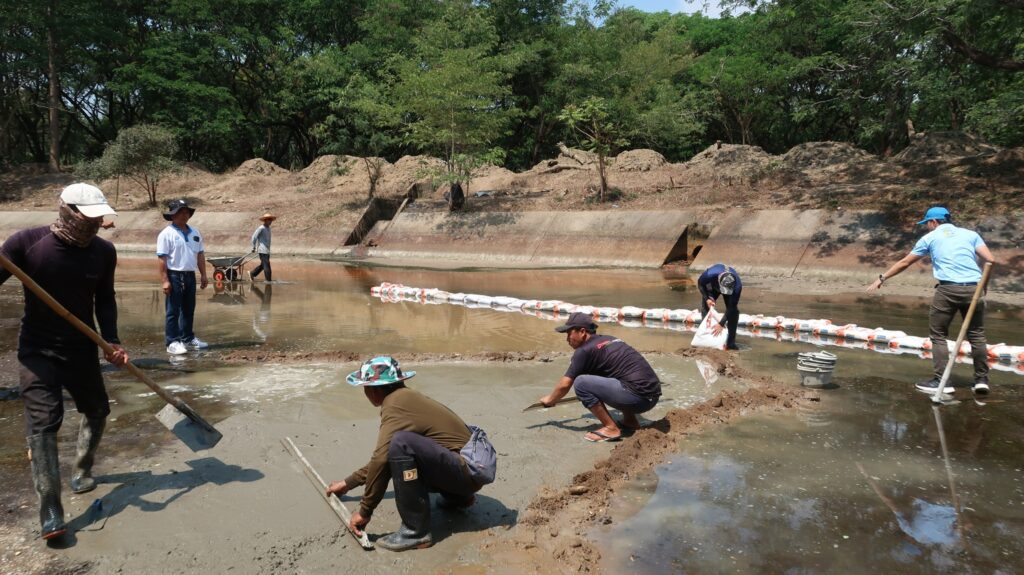 จากการตรวจสอบพบว่า ในส่วนพื้นคลองส่งน้ำคอนกรีตเสริมเหล็กถูกกระแสน้ำกัดเซาะมาเป็นเวลานาน จนทำให้เห็นเหล็กเสริม ซึ่งอาจเป็นอันตรายแก่ประชาชนที่ลงไปเล่นน้ำในคลองได้ โครงการส่งน้ำและบำรุงรักษาแม่กวงอุดมธาราได้ดำเนินการซ่อมแซมปรับปรุง โดยทำการดัดเหล็กพื้นคลองส่งน้ำพร้อมทำการเทปูนปิดพื้นคลองในจุดที่ตรวจพบผิวคอนกรีตที่ถูกน้ำกัดเซาะให้กลับสู่สภาพเดิม เพื่อป้องกันอันตรายที่อาจจะเกิดขึ้น ทั้งนี้เป็นไปตามข้อสั่งการของ นายเฉลิมเกียรติ อินทกนก ผู้อำนวยการโครงการส่งน้ำและบำรุงรักษาแม่กวงอุดมธารา ในการอำนวยความสะดวกและความปลอดภัย ที่เสี่ยงต่อการเกิดอุบัติเหตุในการเล่นน้ำของนักท่องเที่ยวและประชาชน ในช่วงรอบเวรการส่งน้ำให้พื้นที่การเกษตรของ คบ.แม่กวงฯ ในรอบเวรระหว่างวันที่ 11 – 17 เมษายน 2568 ซึ่งตรงกับช่วงเทศกาลสงกานต์ คาดว่าจะมีนักท่องเที่ยวและประชาชนทั้งในและนอกพื้นที่ อำเภอดอยสะเก็ดและอำเภอสันทราย จังหวัดเชียงใหม่ มาพักผ่อนเล่นน้ำบริเวณท้ายเขื่อนแม่กวงอุดมธาราเป็นจำนวนมาก