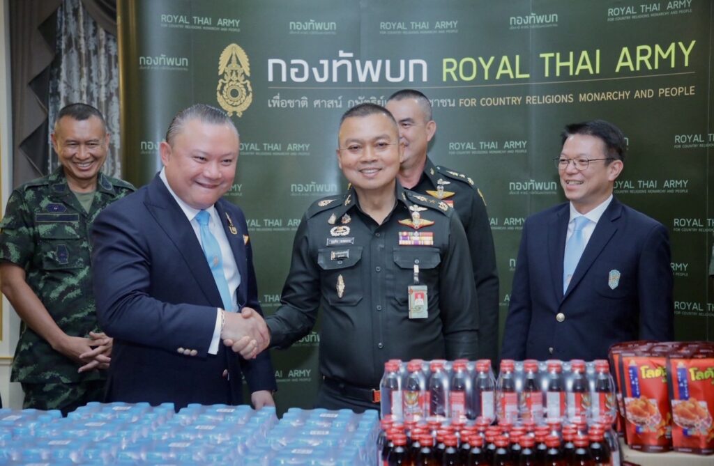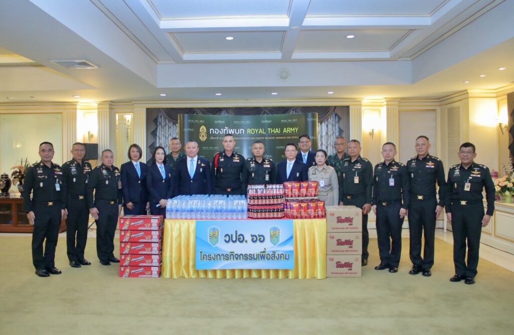 วันนี้ (9 มิ.ย.68) เวลา 14.30 น. ณ ห้องรับรอง 321 กองบัญชาการกองทัพบก คณะนักศึกษาหลักสูตรการป้องกันราชอาณาจักร รุ่นที่ 66 (วปอ.รุ่นที่ 66) นำโดย คุณโสภณ ราชรักษา รองกรรมการผู้อำนวยการใหญ่ บริษัท ไทยเบฟเวอเรจ จำกัด (มหาชน) และคุณปิยะธิดา ประดิษฐบาทุกา พร้อมคณะ รวมพลังส่งมอบกำลังใจให้กับทหารแนวหน้าของกองทัพบก โดยได้มอบเงิน สิ่งของและเครื่องดื่ม รวมมูลค่ากว่า 1,000,000 บาท ให้กับกองกำลังป้องกันชายแดนกองทัพบก ที่ปฏิบัติหน้าที่บริเวณชายแดนไทย – กัมพูชา โดยมี พล.ท.บุญสิน พาดกลาง แม่ทัพภาคที่ 2 พร้อมคณะผู้บังคับบัญชาของกองทัพบก เป็นผู้แทนรับมอบ เพื่อเป็นกำลังใจให้กับทหารที่การปฏิบัติหน้าที่ในพื้นที่ชายแดนอย่างเข้มแข็ง