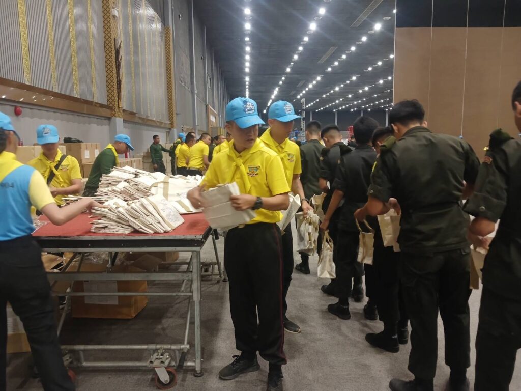 เชียงใหม่-ศูนย์อำนวยการจิตอาสาพระราชทานมณฑลทหารบกที่ 33 ฝ่ายปกครองจังหวัดเชียงใหม่ รด.จิตอาสา บูรณาการทุกภาคส่วนทจัดเตรียมสิ่งของพระราชทาน ให้ผู้เข้าร่วมกิจกรรม “ปูทาง..สู่การตื่นรู้ ธรรมนาวา วัง” (ภาคประชาชน รุ่นที่ 4) จังหวัดเชียงใหม่ ในวันอาทิตย์ที่ 13 กรกฎาคม 2568