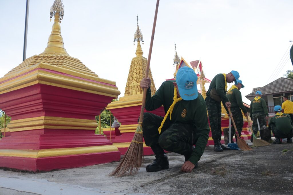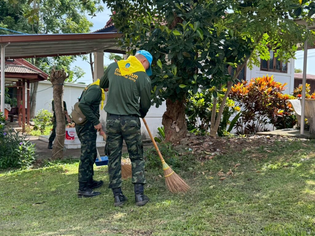 พะเยา-ศูนย์อำนวยการจิตอาสาพระราชทานมณฑลทหารบกที่ 34 จัดกำลังพล จิตอาสาพระราชทาน ร่วมพัฒนาสาธารณประโยชน์ เนื่องในวันอาสฬหบูชา ประจำปี 2568