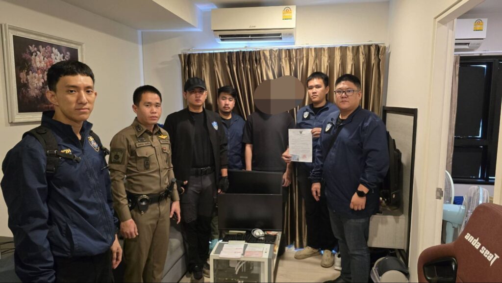 ต่อมาวันที่ 9 ธ.ค.2568 เวลาประมาณ 09.00 น. เจ้าหน้าที่ตำรวจ ศปอส.ภ.จว.เชียงใหม่ นำหมายค้นเข้าตรวจค้นห้องพักตึก B ต.ฟ้าฮ่าม อ.เมืองเชียงใหม่ จ.เชียงใหม่ เนื่องด้วยเหตุต้องสงสัยว่าสถานที่ดังกล่าวมีสิ่งของที่ใช้ในการกระทำความผิดเกี่ยวกับคดีพนันออนไลน์ หรือมีอุปกรณ์อิเล็กทรอนิกส์ที่ใช้ในการกระทำความผิดเกี่ยวกับคดีอาชญากรรมทางเทคโนโลยี เมื่อเข้าทำการตรวจค้นพบ นายภูมิใจ อายุ 29 ปี ที่อยู่ ม.9 ต.ทุ่งช้าง จ.น่าน ผู้ต้องหา (ทราบชื่อภายหลัง) แสดงตัวเป็นผู้อยู่อาศัยห้องพักดังกล่าว และเป็นผู้นำตรวจค้น ผลการตรวจค้นพบคอมพิวเตอร์พร้อมอุปกรณ์ส่วนควบ จำนวน 1 เครื่อง (ของกลางลำดับที่ 1) อยู่ภายในห้องนั่งเล่นของห้องพักดังกล่าว และพบโทรศัพท์มือถือ ยี่ห้อ Apple รุ่น iPhone 16 Pro max สีดำ จำนวน 1 เครื่อง (ของกลางลำดับที่ 2) อยู่ในความครอบครองของผู้ต้องหาขณะจับกุม สอบถาม นายภูมิใจฯ ให้การรับว่าของกลางดังกล่าวเป็นของตนจริง