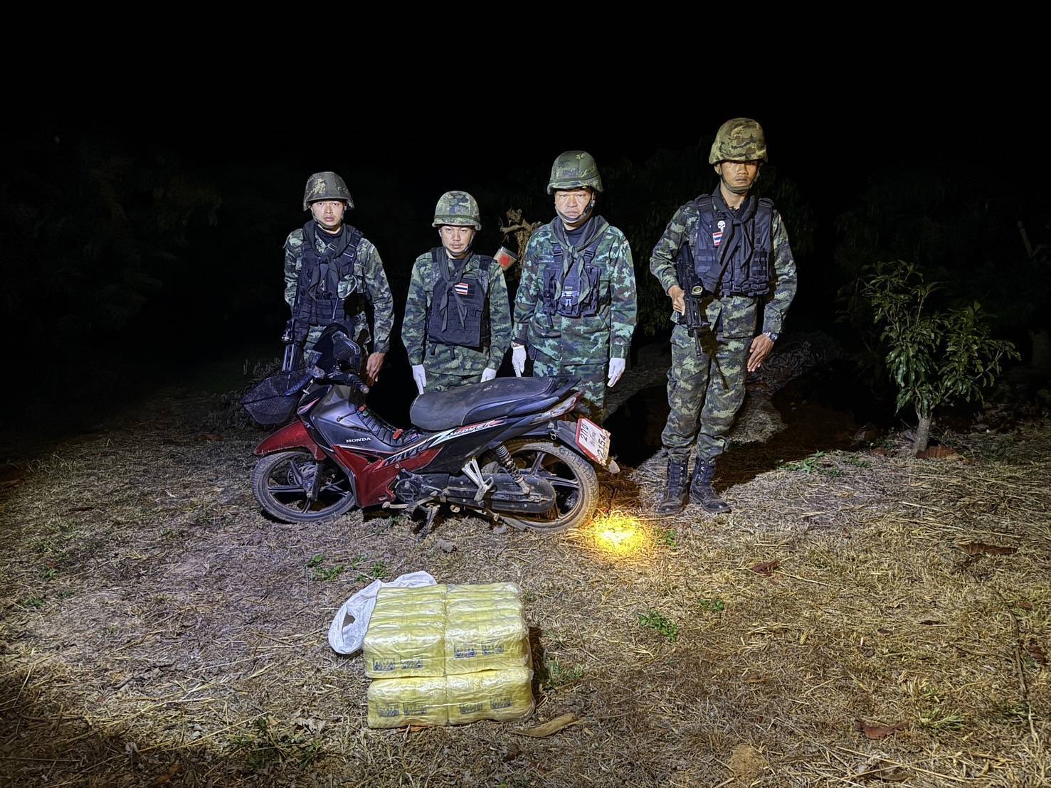 กรณี เมื่อวันที่ 10 กุมภาพันธ์ 2568 เวลา 05.30 น. กองร้อยทหารม้าที่ 2 หน่วยเฉพาะกิจไชยานุภาพ จัดกำลังพล 1 ชุดดปฏิบัติการ ปฏิบัติภารกิจตั้งจุดตรวจจุดสกัดเพื่อป้องกันและสกัดกั้นการกระทำผิดตามพระราชบัญญัติยาเสพติด และการกระทำผิดกฎหมายอื่นๆ บริเวณ ช่องทางสวนลำไย ตำบลเมืองนะ อำเภอเชียงดาว จังหวัดเชีงใหม่ ตรวจพบบุคคลต้องสงสัยขับขี่รถจักรยานยนต์ตามเส้นทางในภูมิประเทศ ออกมาจากบริเวณพื้นที่แนวชายแดน ชุดดปฏิบัติการจึงแสดงตัวขอตรวจค้น แต่บุคคลต้องสงสัยดังกล่าว เมื่อเห็น เจ้าหน้าที่ทหาร จึงทิ้งรถจักรยานยนต์ โดย อาศัยทัศนวิสัยจำกัดและความชำนาญในภูมิประเทศสามารถหลบหนีไปได้ หน่วยได้วางกำลังเข้าควบคุมพื้นที่ และตรวจสอบพื้นที่ ตรวจพบกระสอบปุ๋ยสีขาว จำนวน 1 กระสอบ วางอยู่บริเวณระหว่างหน้าเบาะรถจักรยานยนต์ภายในบรรจุยาเสพติดให้โทษประเภท 1 (ยาบ้า) จำนวนประมาณ 200,000 เม็ด และรถจักรยานยนต์ จำนวน 1 คัน และตรวจค้นใต้เบาะรถจักรยานยนต์ พบเอกสารคู่มือทะเบียนรถ โดยผู้ถือกรรมสิทธิ์ชื่อ นายซิ่นหมิง แซ่โก๋ เลขที่บัตร 6500047239321 อายุ 59 ปี สัญชาติจีน ที่อยู่ 337/ช หมู่ 10 บ้านอรุโณทัย ตำบลเมืองนะ อำเภอเชียงดาว จังหวัดเชีงใหม่