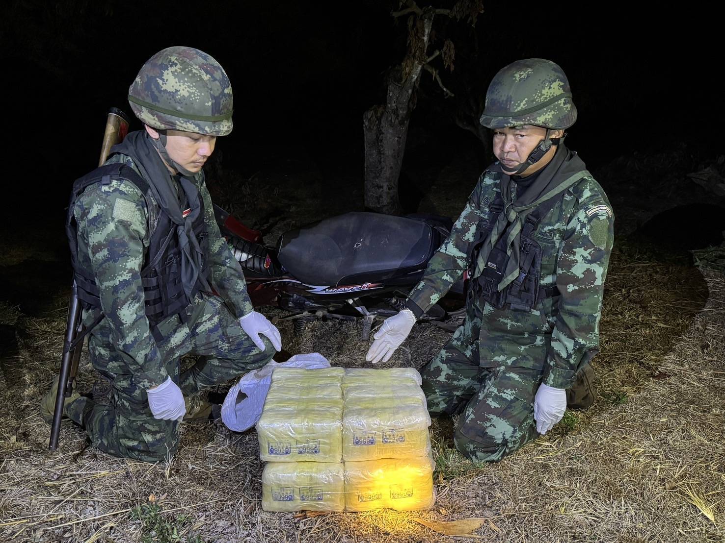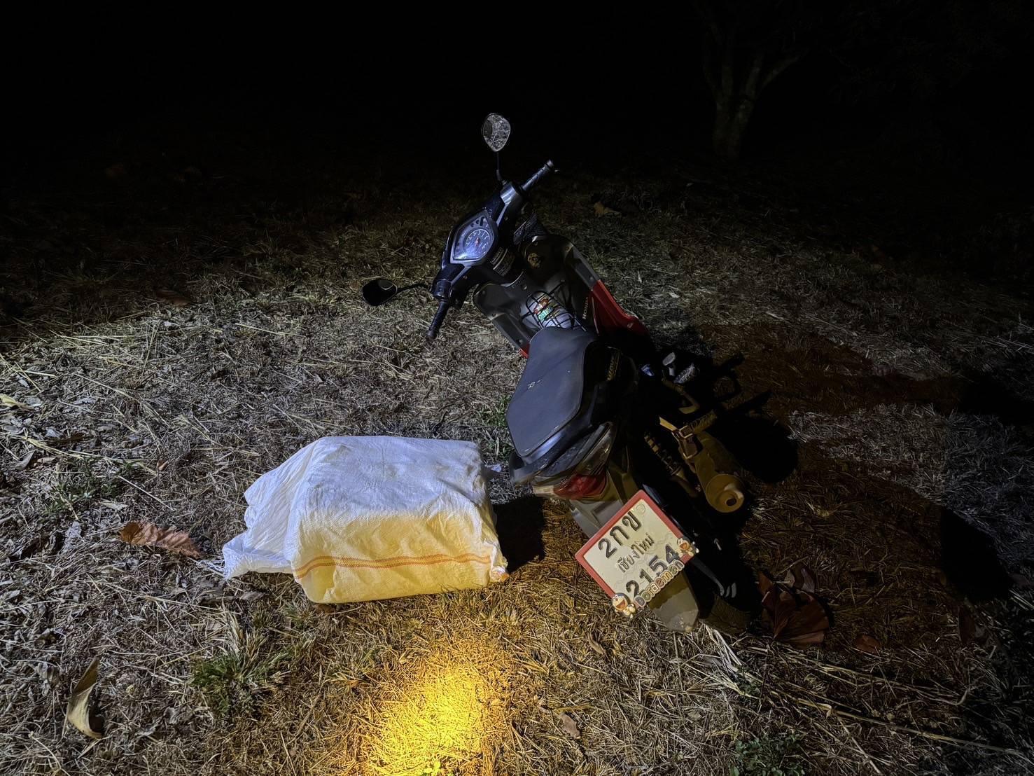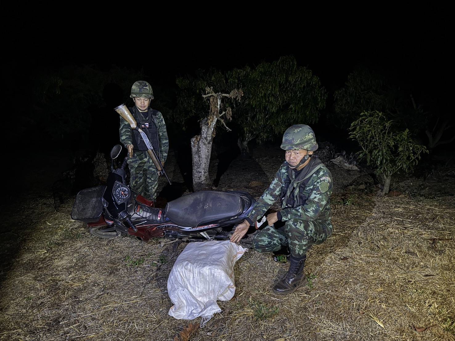 กรณี เมื่อวันที่ 10 กุมภาพันธ์ 2568 เวลา 05.30 น. กองร้อยทหารม้าที่ 2 หน่วยเฉพาะกิจไชยานุภาพ จัดกำลังพล 1 ชุดดปฏิบัติการ ปฏิบัติภารกิจตั้งจุดตรวจจุดสกัดเพื่อป้องกันและสกัดกั้นการกระทำผิดตามพระราชบัญญัติยาเสพติด และการกระทำผิดกฎหมายอื่นๆ บริเวณ ช่องทางสวนลำไย ตำบลเมืองนะ อำเภอเชียงดาว จังหวัดเชีงใหม่ ตรวจพบบุคคลต้องสงสัยขับขี่รถจักรยานยนต์ตามเส้นทางในภูมิประเทศ ออกมาจากบริเวณพื้นที่แนวชายแดน ชุดดปฏิบัติการจึงแสดงตัวขอตรวจค้น แต่บุคคลต้องสงสัยดังกล่าว เมื่อเห็น เจ้าหน้าที่ทหาร จึงทิ้งรถจักรยานยนต์ โดย อาศัยทัศนวิสัยจำกัดและความชำนาญในภูมิประเทศสามารถหลบหนีไปได้ หน่วยได้วางกำลังเข้าควบคุมพื้นที่ และตรวจสอบพื้นที่ ตรวจพบกระสอบปุ๋ยสีขาว จำนวน 1 กระสอบ วางอยู่บริเวณระหว่างหน้าเบาะรถจักรยานยนต์ภายในบรรจุยาเสพติดให้โทษประเภท 1 (ยาบ้า) จำนวนประมาณ 200,000 เม็ด และรถจักรยานยนต์ จำนวน 1 คัน และตรวจค้นใต้เบาะรถจักรยานยนต์ พบเอกสารคู่มือทะเบียนรถ โดยผู้ถือกรรมสิทธิ์ชื่อ นายซิ่นหมิง แซ่โก๋ เลขที่บัตร 6500047239321 อายุ 59 ปี สัญชาติจีน ที่อยู่ 337/ช หมู่ 10 บ้านอรุโณทัย ตำบลเมืองนะ อำเภอเชียงดาว จังหวัดเชีงใหม่