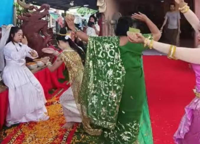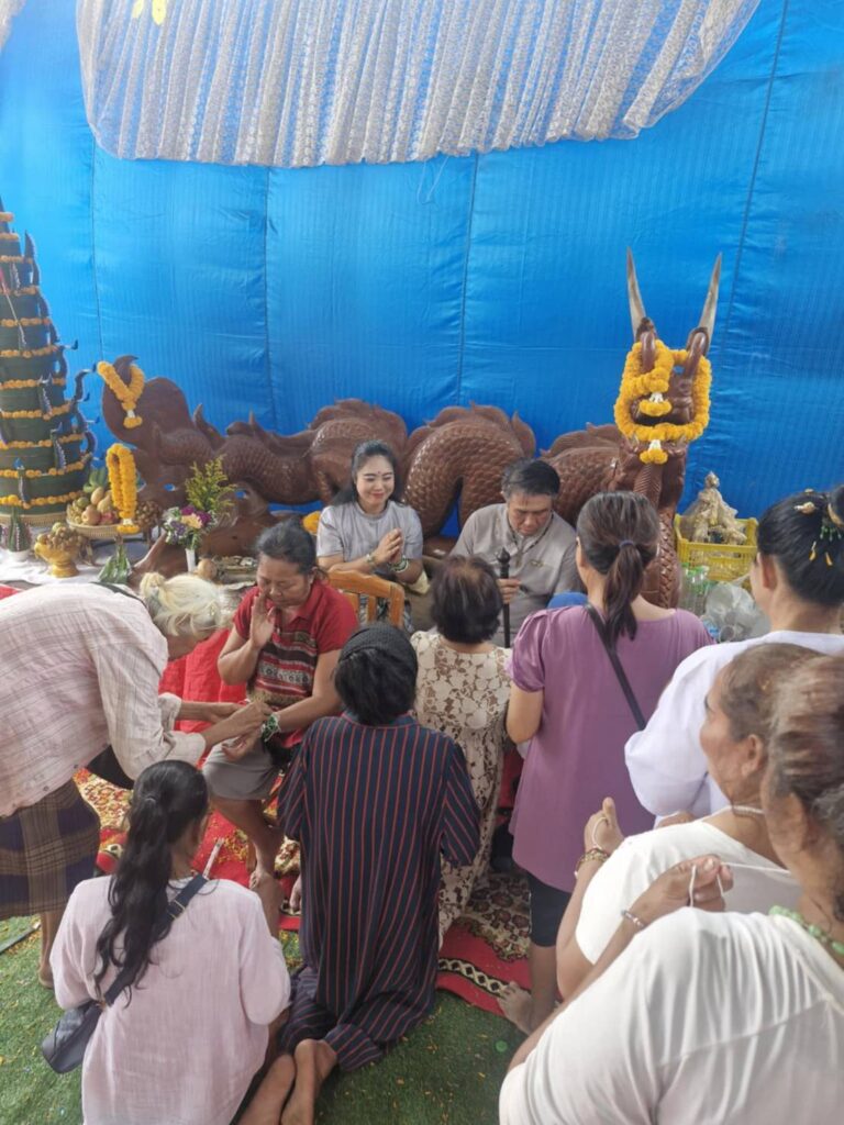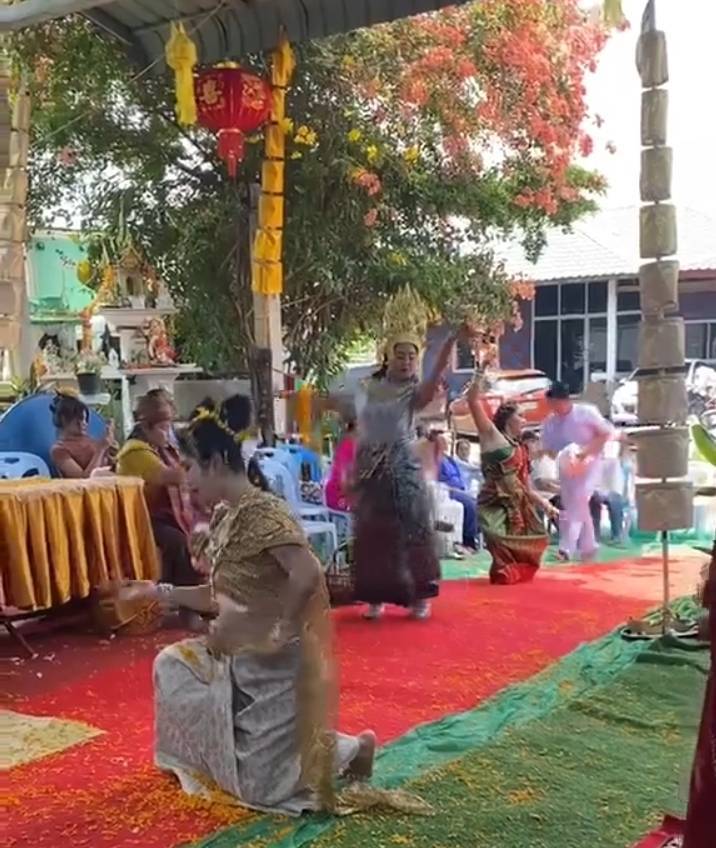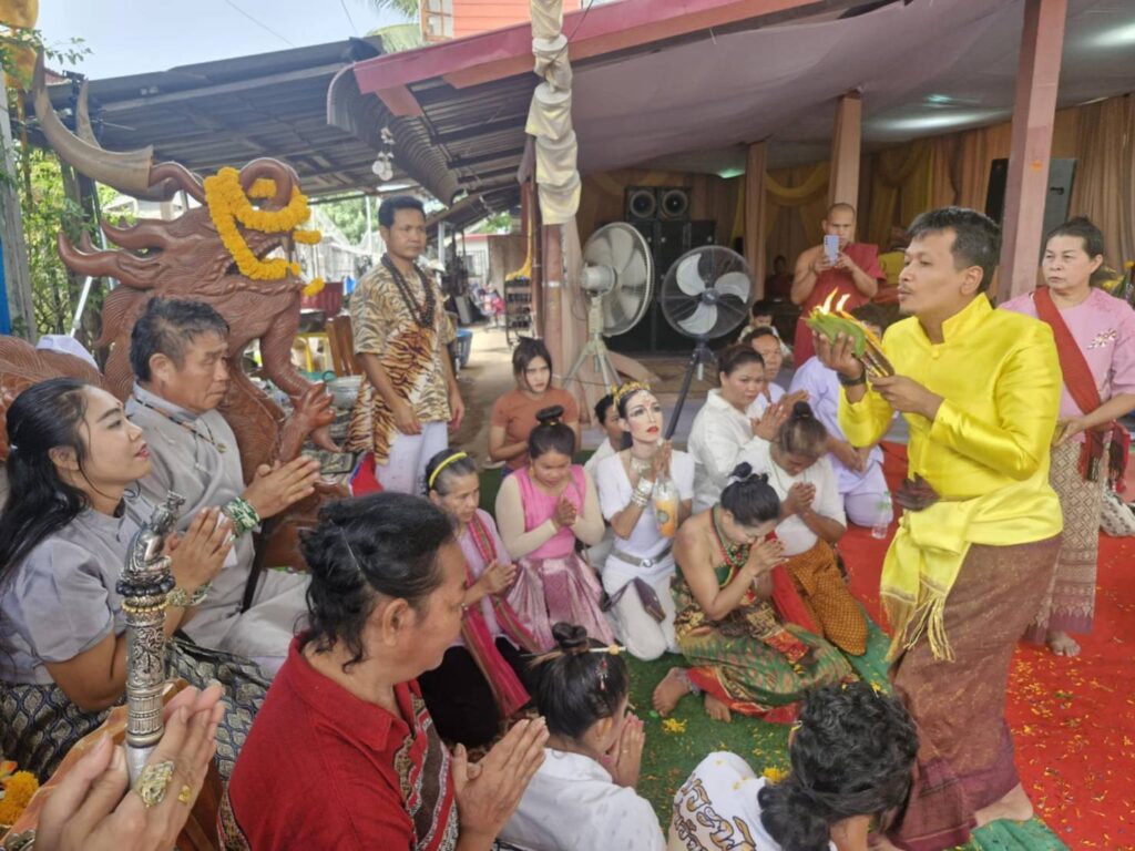 โดยในพิธี..มีนางรำสายญาณมากมาย และ อาคันตุกะมาร่วมพิธีทั่วสารทิศ ช่วงสุดท้ายพิธีก็มีพิธีการสู่ขวัญบายศรีให้แก่เจ้าภาพ และลูกศิษย์ลูกหาลูกหลานได้ร่วมผูกแขนอวยพรให้ เจ้าตำหนักเจ้าภาพในพิธีต่อไปอีกด้วย.