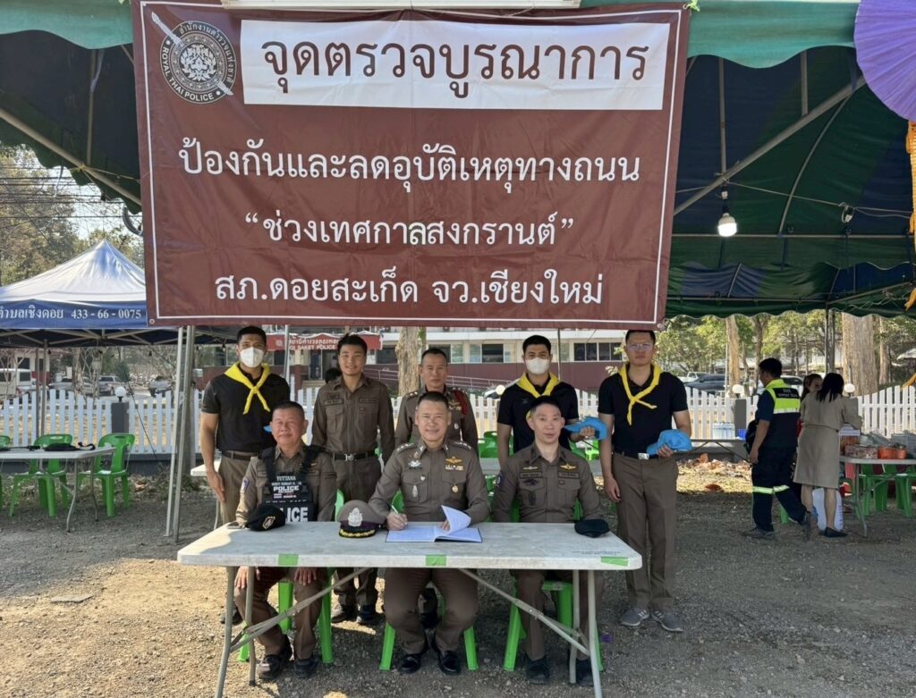 เชียงใหม่-สภ.ดอยสะเก็ด จ.เชียงใหม่ร่วมพิธีเปิดจุดบริการประชาชน ในการป้องกันและลดอุบัติเหตุทางถนนช่วงเทศกาลสงกรานต์ ประจำปี 2569 ณ บริเวณหน้าสถานีตำรวจภูธรดอยสะเก็ด อำเภอดอยสะเก็ด จังหวัดเชียงใหม่