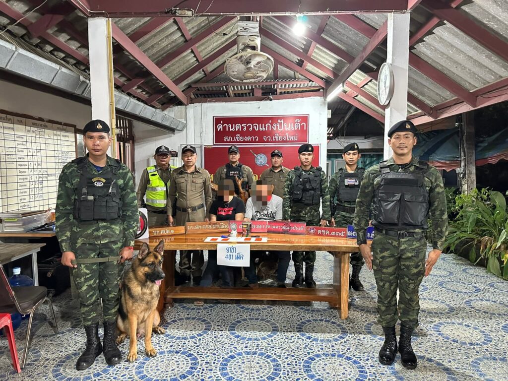 เชียงใหม่- ตำรวจ สภ.เชียงดาวรวบคาด่านสองผู้ต้องหาซุกยาบ้ากว่า 401 เม็ด ส่งดำเนินคดี