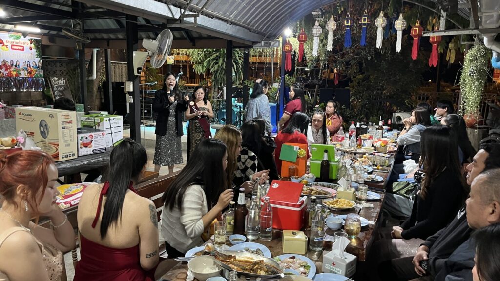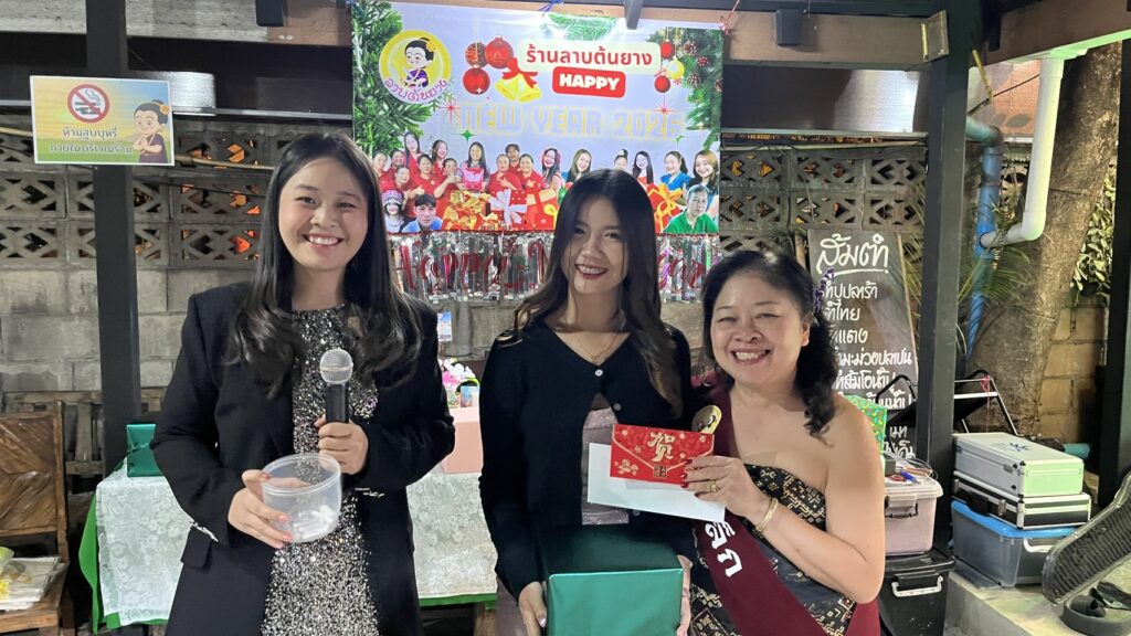 เชียงใหม่-ส่งท้ายปีเก่า ต้อนรับปีใหม่ 2569 ร้านลาบต้นยางเชียงใหม่ ประกวดธิดาลาบ ส่งท้ายปีเก่าต้อนรับปีใหม่ให้พนักงานทุกแผนกแต่งตัวธีมนางงาม เด็กเสิร์ฟสาว กุ๊ก และแม่ครัว มอบรางวัลเงินสดอุปกรณ์ไฟฟ้า แขกมารับประทานอาหารร่วมมอบเงินให้ธิดาลาบ และพนักงานในร้านสุดชื่นมื่น