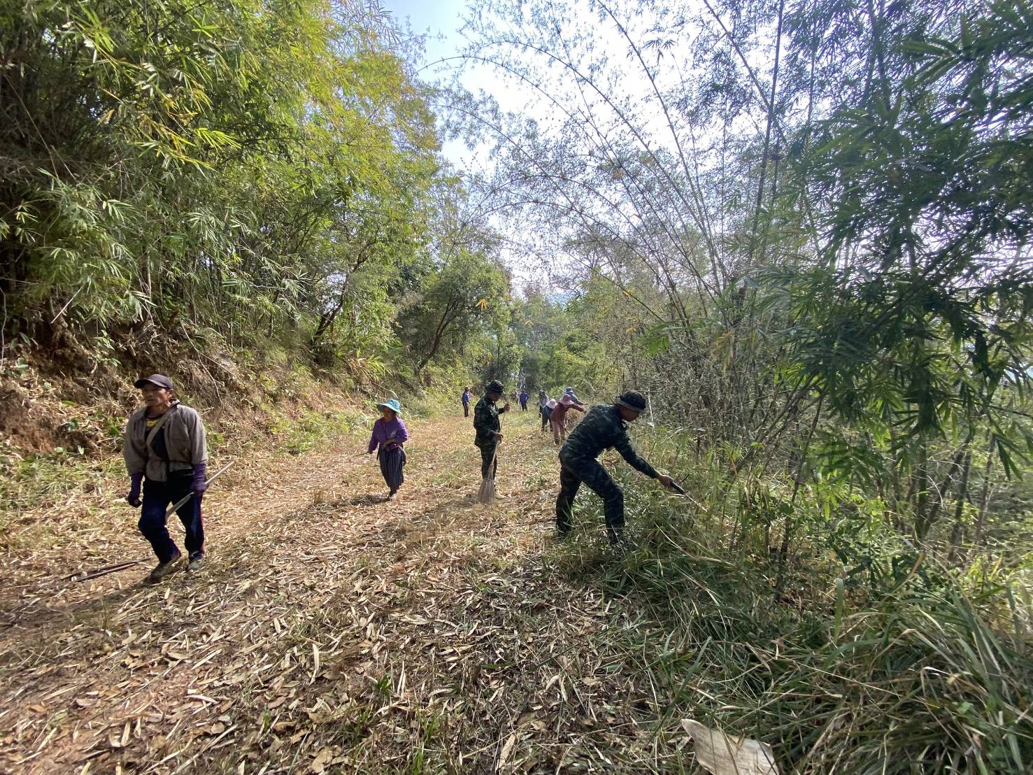 เมื่อวันที่ 11 ก.พ. 68 เวลา 08.30 – 11.30 น. กกล.ผาเมือง โดย ร้อย.ม.1 ฉก.ทัพเจ้าตาก ผู้นำชุมชน และประชาชนในพื้นที่ บ.ม้งเก้าหลัง ร่วมทำแนวกันไฟเพื่อป้องกันไฟป่า เป็นระยะทางประมาณ 1 กม. ณ บ้านม้งเก้าหลัง ต.เทอดไทย อ.แม่ฟ้าหลวง จว.ช.ร. มีผู้เข้าร่วมกิจกรรมฯ จำนวน 50 คน