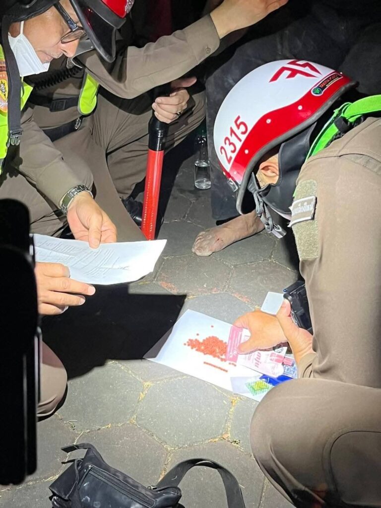 3. จราจรทั้ง 2 นาย ตัดสินใจวิ่งไล่กวด (Foot Chase) จนสามารถชาร์จตัวควบคุมผู้ต้องหาไว้ได้สำเร็จ! (ส่วนคนขับอาศัยจังหวะชุลมุนหลบหนี อยู่ระหว่างเร่งขยายผลติดตามตัว)ของกลางที่ตรวจพบ (ยาเสพติดให้โทษประเภท 1):ยาบ้า: จำนวน 184 เม็ดเฮโรอีน: บรรจุในหลอดสีแดง 1 หลอด