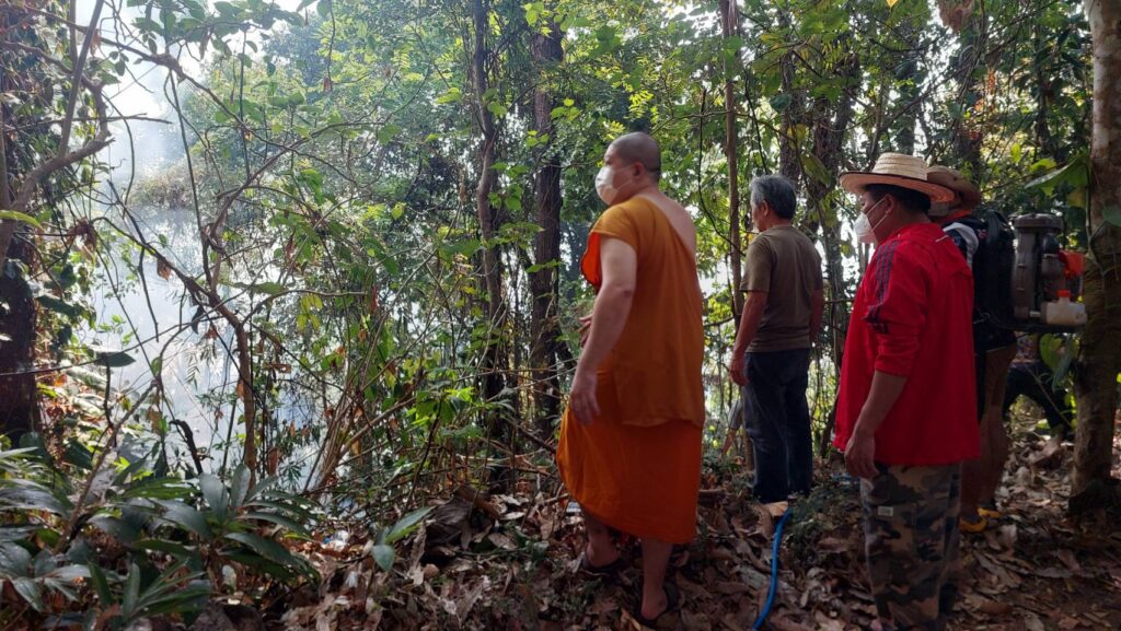 สำหรับจุดเกิดเหตุอยู่ห่างจากวัดพระธาตุดอยสุเทพราชวรวิหารประมาณ 500 เมตร โดยชาวบ้านให้ข้อมูลว่า เมื่อวานนี้ได้ร่วมกันทำแนวกันไฟในพื้นที่ แต่ยังไม่แล้วเสร็จในบางช่วง เนื่องจากบริเวณที่เรียกว่า “ผาผึ้ง” ซึ่งมีรังผึ้งขนาดใหญ่ จึงไม่สามารถเข้าดำเนินการได้ ก่อนที่ไฟป่าจะลุกลามขึ้นในจุดดังกล่าวในวันนี้ ล่าสุดสามารถควบคุมไฟให้อยู่ในวงจำกัดได้แล้ว เหลือเพียงแนวไฟที่ไหม้ดำ โดยเจ้าหน้าที่ยังคงจัดกำลังเฝ้าระวังอย่างต่อเนื่อง เพื่อป้องกันไม่ให้เกิดการปะทุซ้ำ
