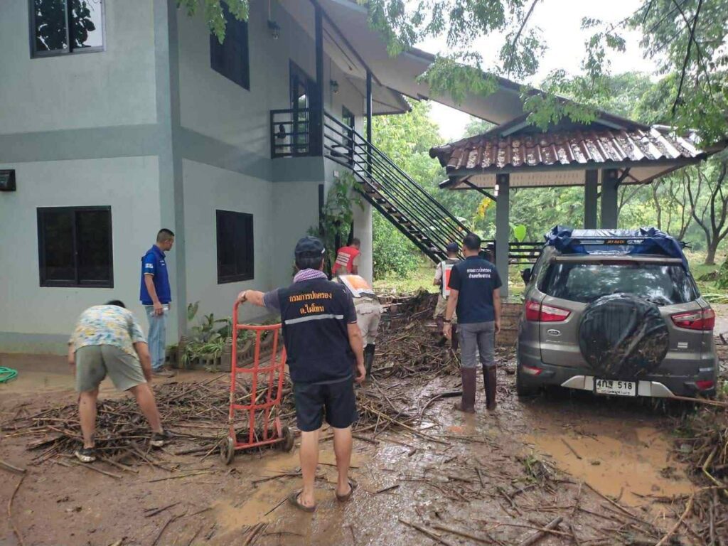 นายธีระ แก้วมา นายอำเภอร้องกวาง นำทีมช่วยเหลือบ้านที่ได้รับความเดือดร้อน จากน้ำป่าไหลหลากที่ตำบลไผ่โทนเป็นการด่วน