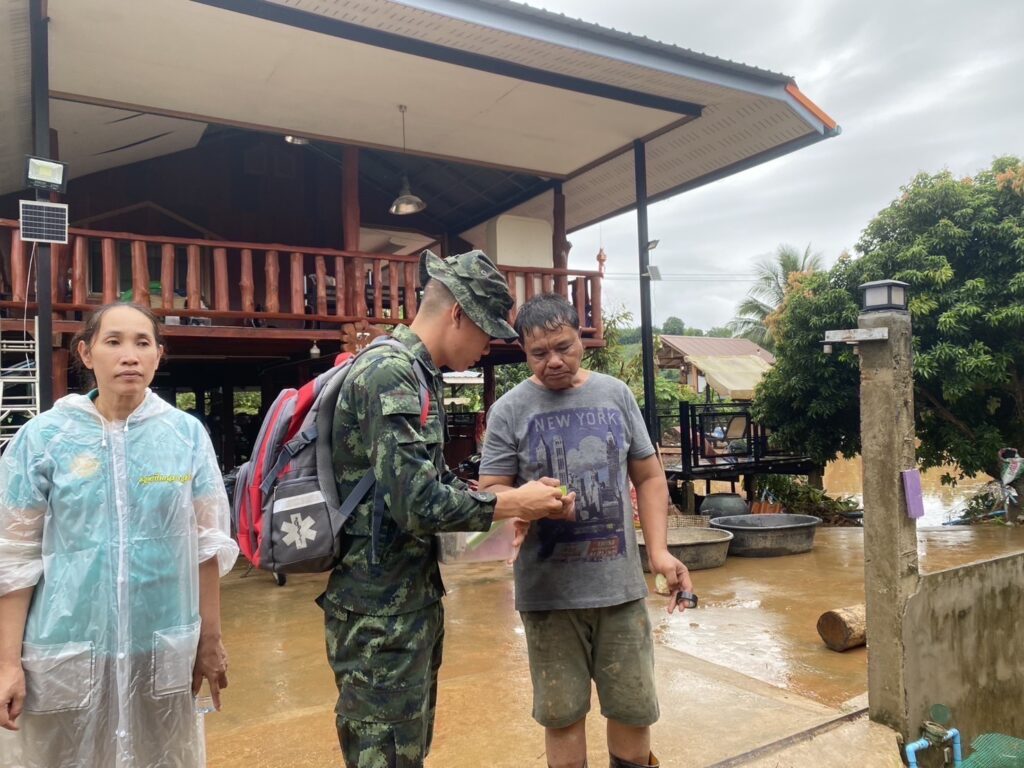 น่าน-ชุดแพทย์เดินเท้าโรงพยาบาลค่ายสุริยพงษ์ เข้าดูแลช่วยเหลือประชาชนที่ประสบอุทกภัย อำเภอเวียงสา จังหวัดน่าน