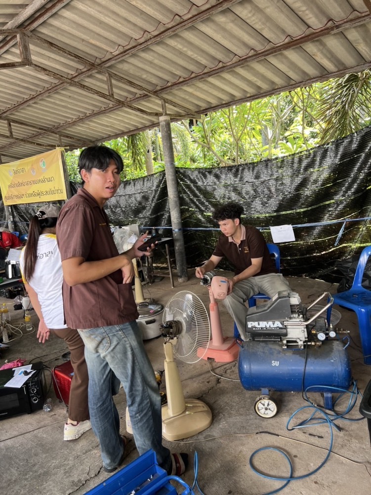 วันเสาร์ที่ 9 สิงหาคม 2568 อาจารย์ดร.อัคค์สัจจา ดวงสุภาสิญจ์ รองอธิการบดีฝ่ายกิจการนักศึกษาและศิษย์เก่าสัมพันธ์ ลงพื้นที่ตรวจเยี่ยมการดำเนินงานของนักศึกษาที่มาช่วยซ่อมเครื่องใช้ไฟฟ้าและเครื่องยนต์มอเตอร์ไซค์ให้กับชาวบ้านที่ได้รับผลกระทบจากอุทกภัยน้ำท่วมน่าน