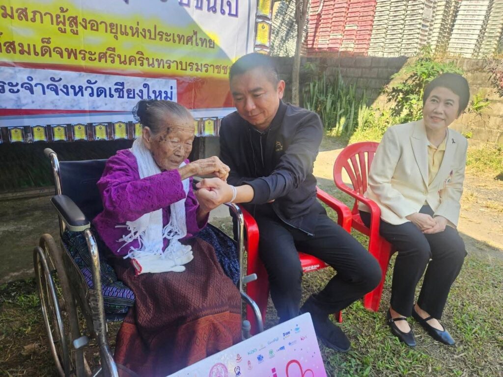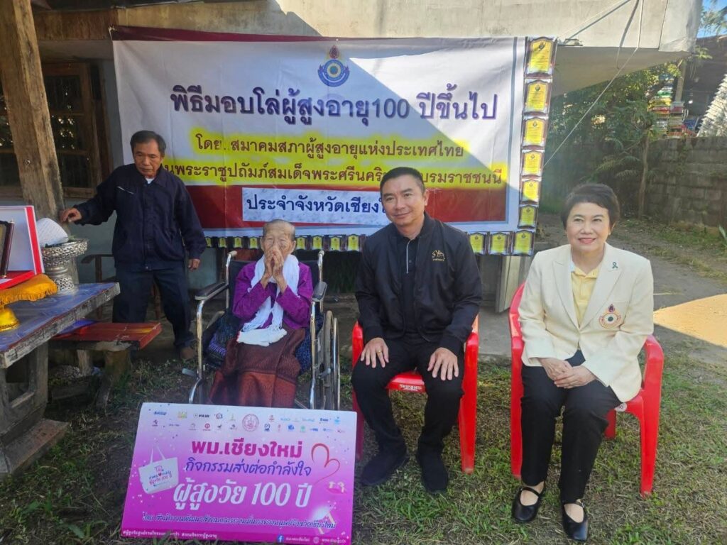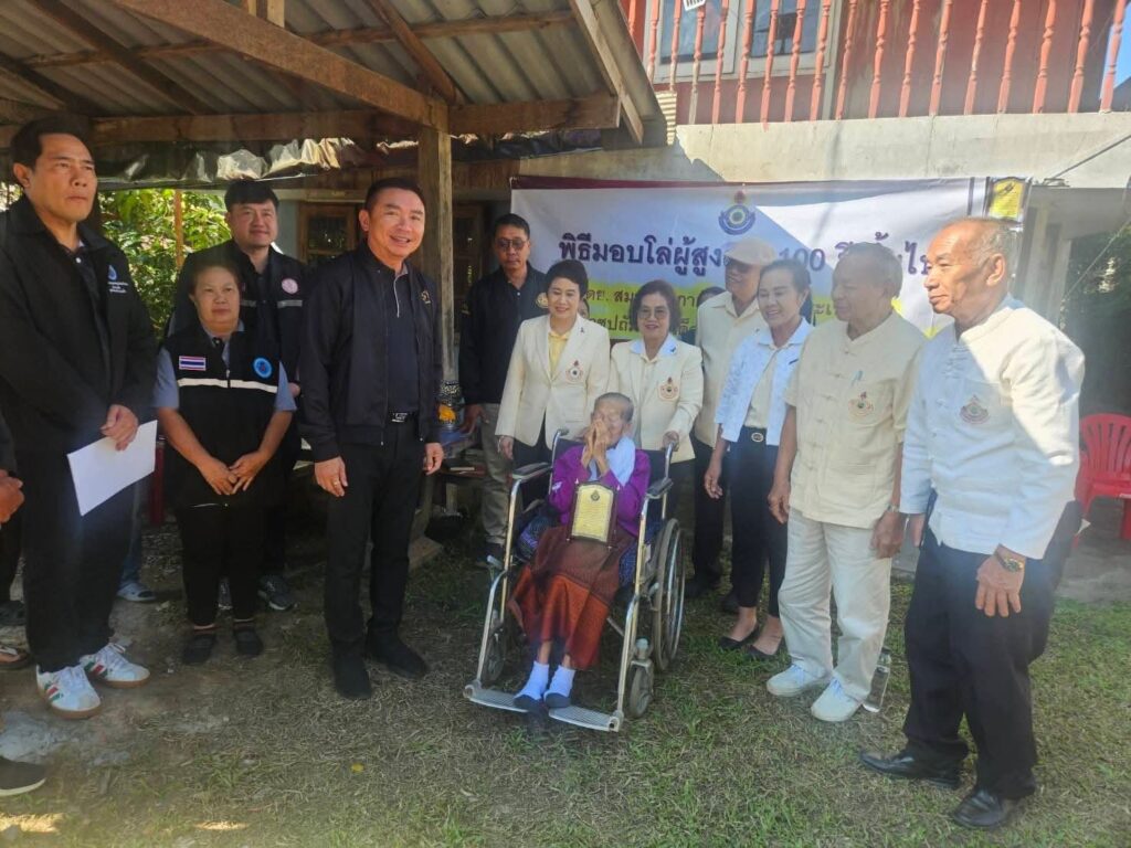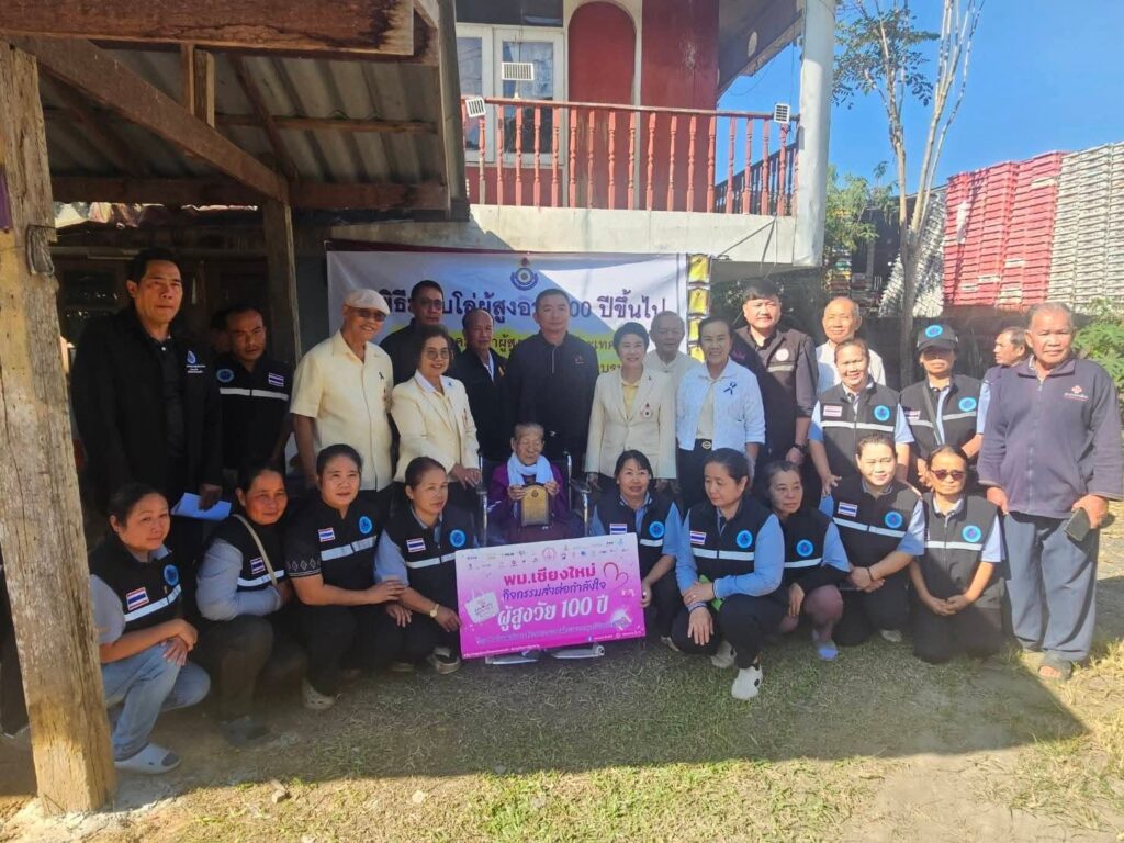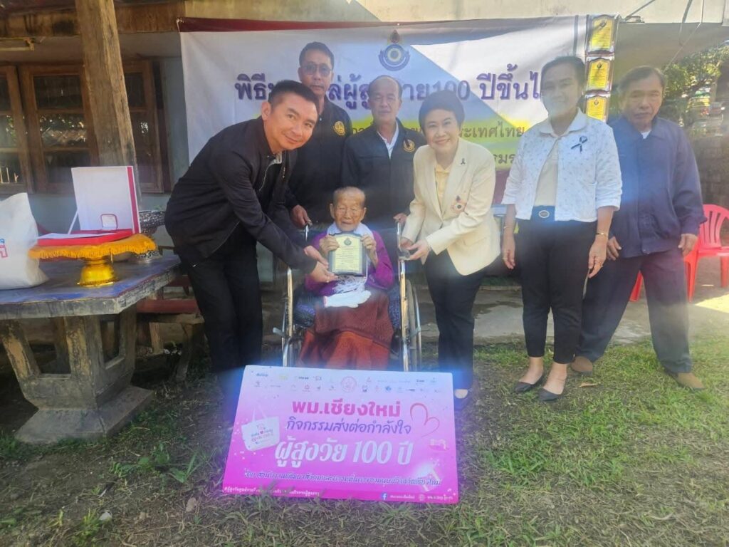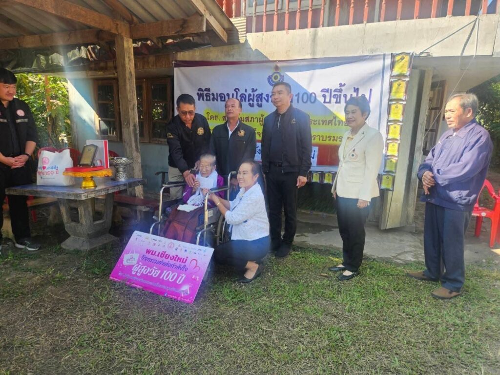 เชียงใหม่-นายอำเภอแม่แตงมอบโล่เกียรติคุณ เข็มกลัดเกียรติคุณและเงินทุนแก่ผู้สูงอายุ 100 ปีขึ้นไป