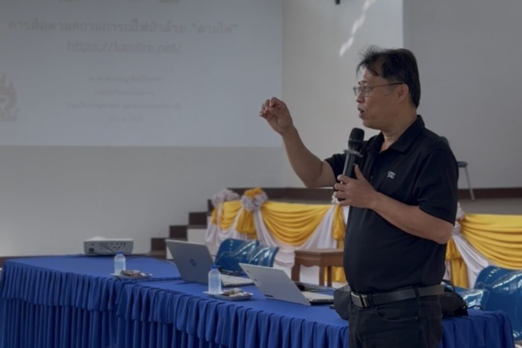 ซึ่งได้รับเกียรติจาก รศ.ดร.สรรเพชญ ชื้อนิธิไพศาล ผู้อำนวยการศูนย์จุฬาชนบท จุฬาลงกรณ์มหาวิทยาลัย มาเป็นวิทยากรให้ความรู้และการใช้แอฟฯ “ตามไฟ” ในการติดตามเข้าถึงจุดความร้อนที่เกิดไฟป่าอย่างทันท่วงที
