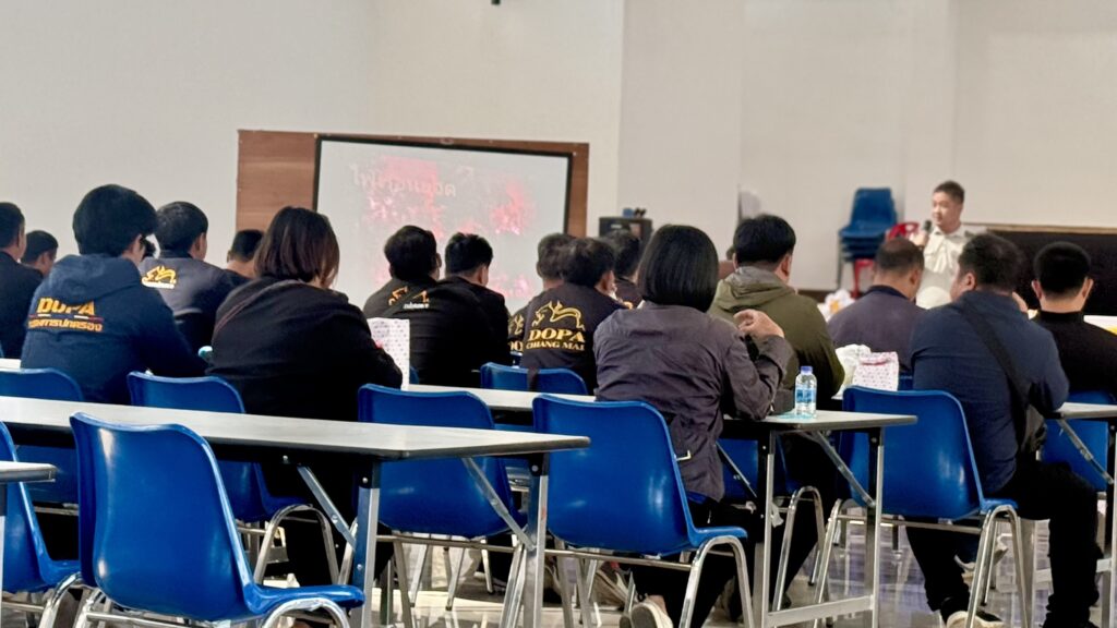 ตลอดจนการให้ความรู้เรื่องไฟป่า วิธีการใช้อุปกรณ์การดับไฟป่า การใช้โดรนบินลาดตระเวนตรวจจับความร้อน ณ หอประชุมอำเภอไชยปราการ จังหวัดเชียงใหม่