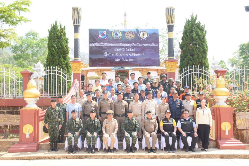 เมื่อวันที่ 12 มีนาคม 2568 เวลา 09.00 น. กองกำลังผาเมือง โดย หน่วยเฉพาะกิจไชยานุภาพ ร่วมกับ ส่วนราชการ/หน่วยงาน และผู้นำหมู่บ้าน/ชุมชน ในพื้นที่อำเภอเวียงแหง จังหวัดเชียงใหม่ ดำเนินการฝึกซักซ้อมแผนเผชิญเหตุด้านกิจการพลเรือน ประจำปี 2568 พื้นที่ อำเภอเวียงแหง จังหวัดเชียงใหม่ โดยมี พันเอกอำนาจ วชิรศักดิ์โสภานะ ผู้บังคับหน่วยเฉพาะกิจไชยานุภาพ เป็นประธานในการฝึกฯ เพื่อเป็นการเตรียมความพร้อมรับสถานการณ์ที่อาจมีการกระทบกระทั่งของกองกำลังในประเทศเพื่อนบ้าน หรือสถานการณ์ทางการเมือง ซึ่งทำให้แต่ละส่วน โดยเฉพาะส่วนราชการ/หน่วยงาน ผู้นำหมู่บ้าน และกำลังประชาชน ได้เข้าใจบทบาทหน้าที่ของตนเอง โดยมี พันเอกชาญชัยวัฒน์ เปล่งสันเทียะ เลขาธิการกองอำนวยการรักษาความมั่นคงภายในภาค 3 ส่วนแยก 2 เป็นผู้แทน ผู้บัญชาการกองกำลังผาเมือง/ผู้อำนวยการรักษาความมั่นคงภายในภาค 3 ส่วนแยก 2 เข้าร่วมสังเกตการณ์ในการฝึกครั้งนี้ด้วย ณ วัดฟ้าเวียงอินทร์ ตำบลเปียงหลวง อำเภอเวียงแหง จังหวัดเชียงใหม่