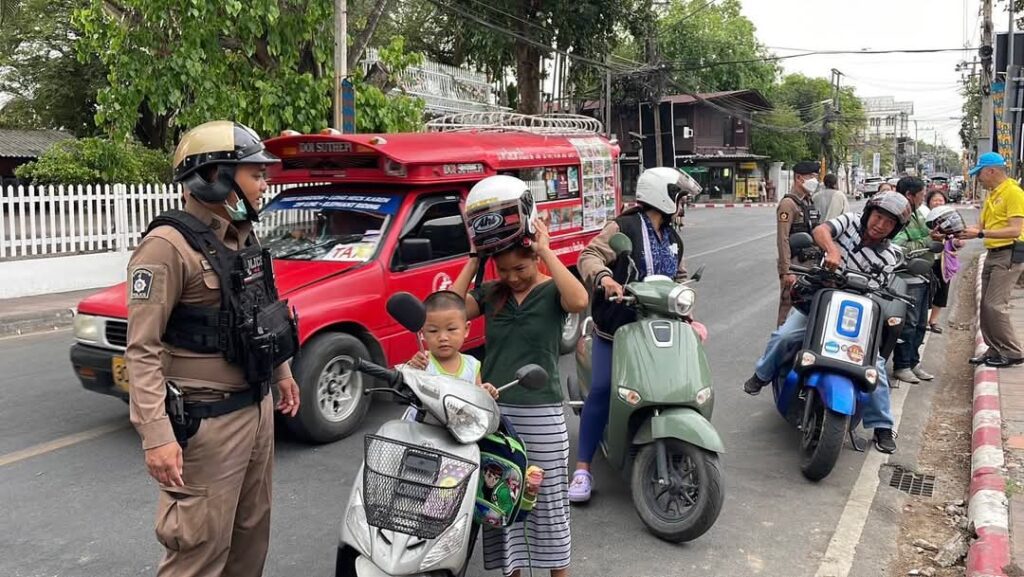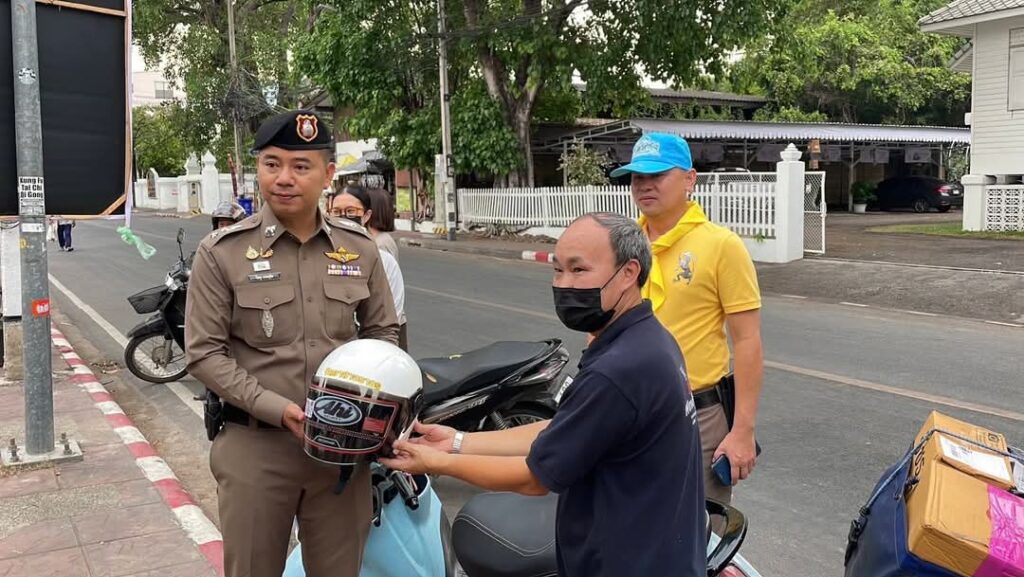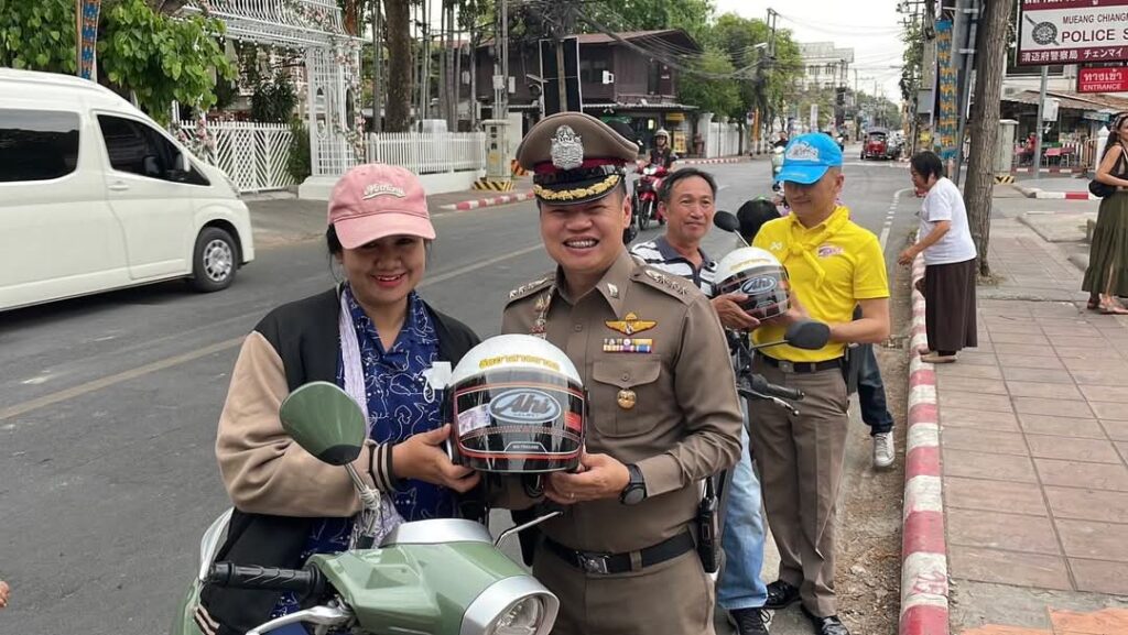 เชียงใหม่-สภ.เมืองเชียงใหม่ ร่วมรณรงค์สงกรานต์ปลอดภัย แจกหมวกนิรภัยฟรีหวังลดอุบัติเหตุบนท้องถนน ให้เป็นสงกรานต์แห่งความสุข