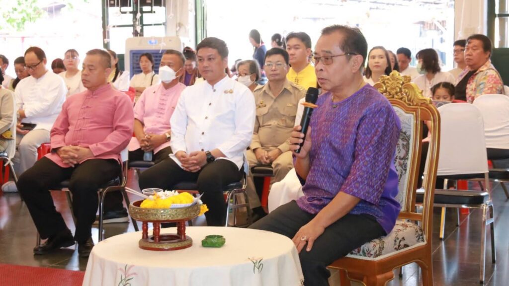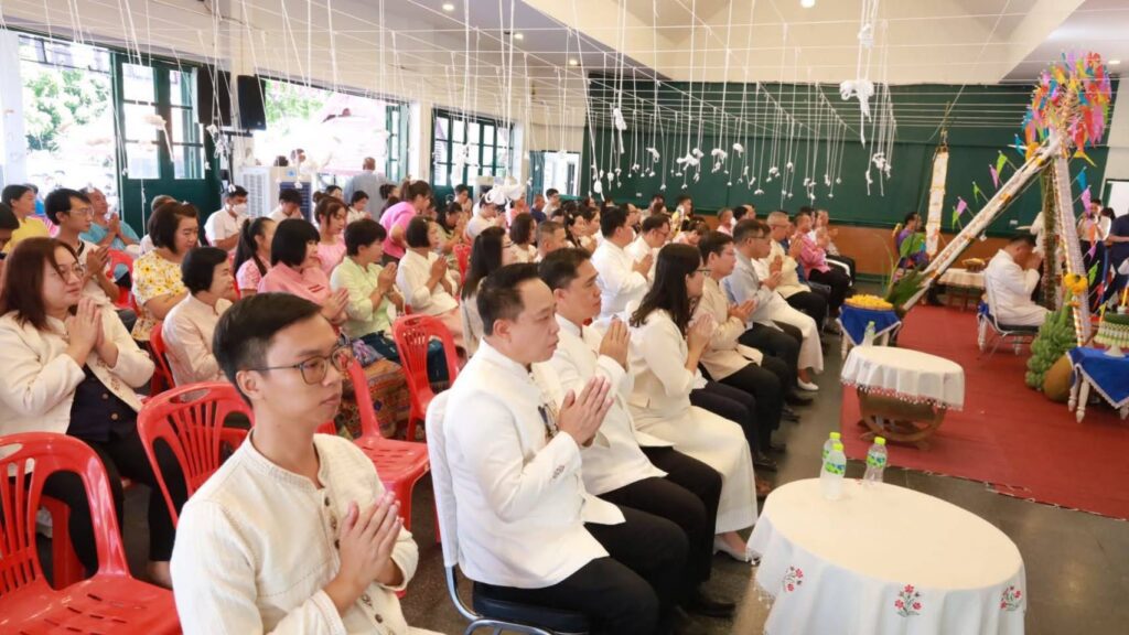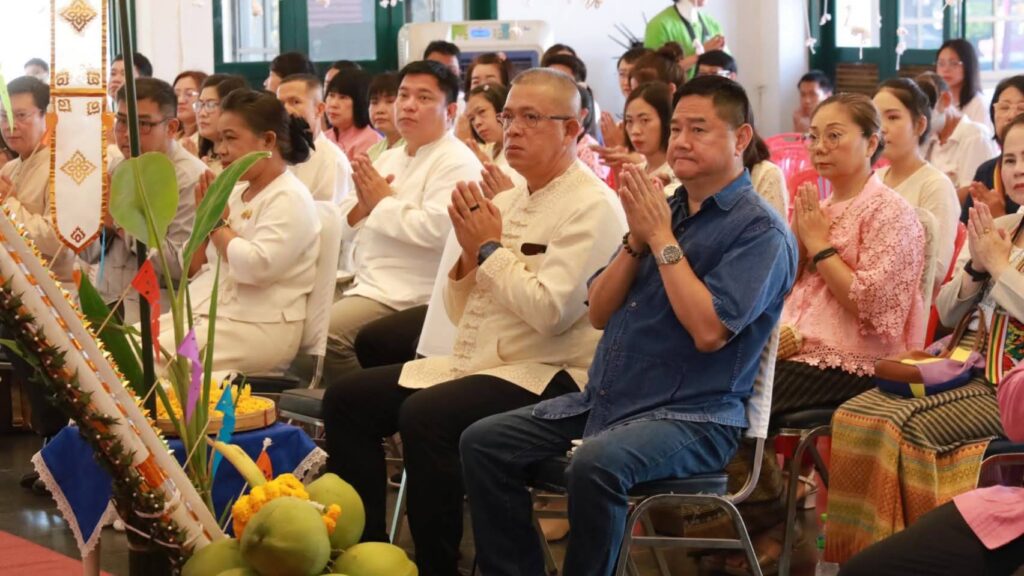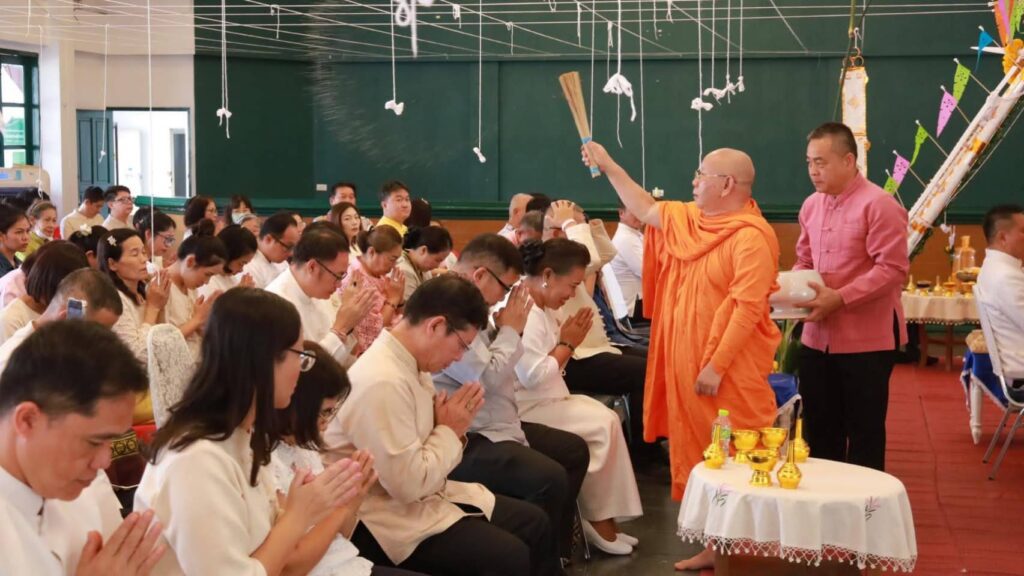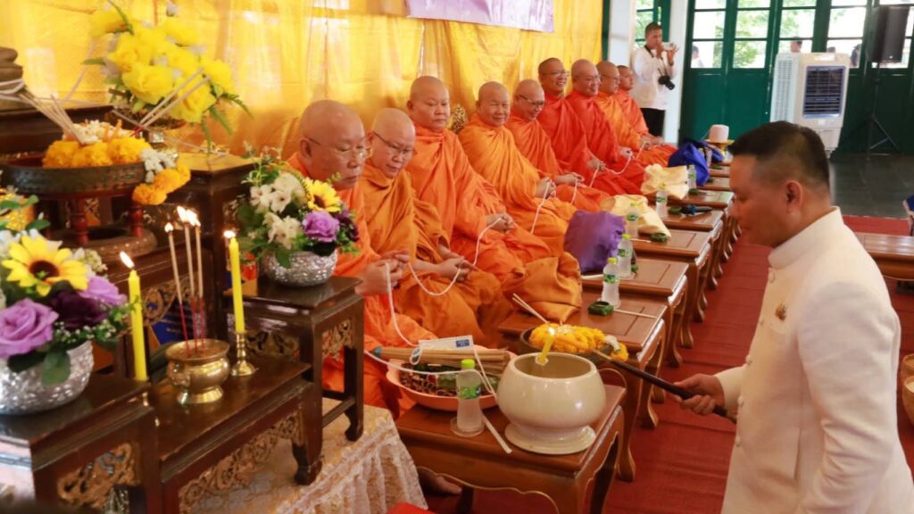 โดยมี พระศรีธรรมโสถภณ รองเจ้าอาวาสวัดพระธาตุหริภุญชัย พร้อมคณะสงฆ์จังหวัดลำพูน ร่วมเจริญพระพุทธมนต์ประกอบทางศานาในการพิธีสืบชะตา