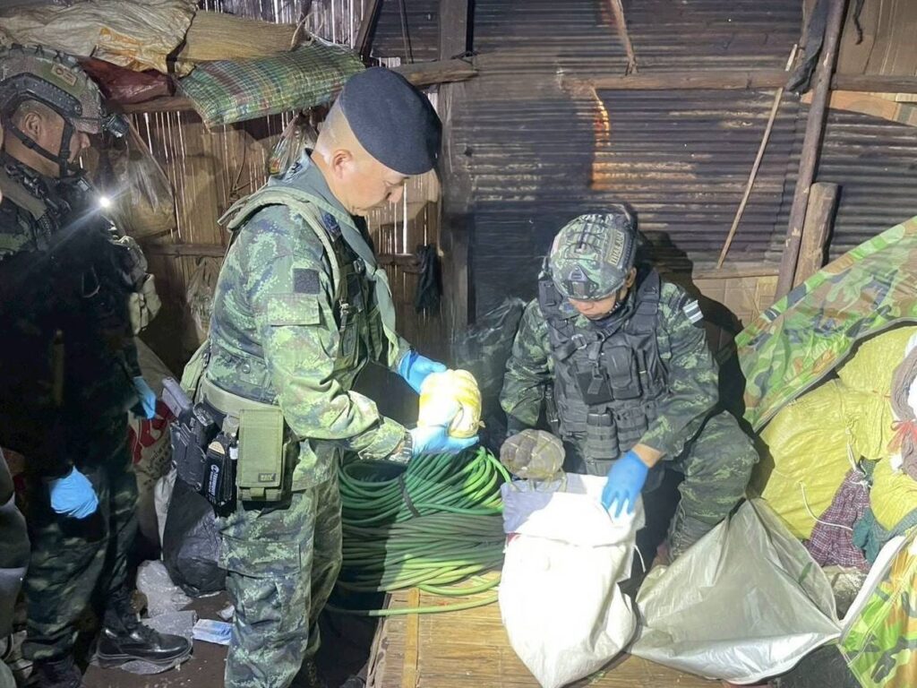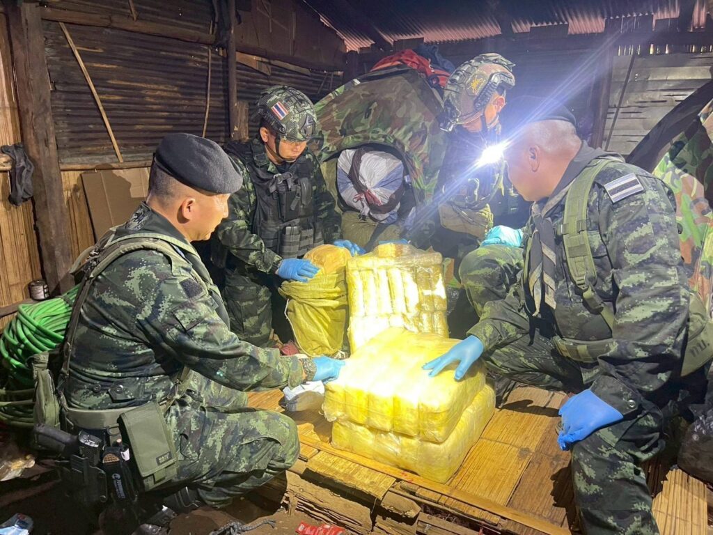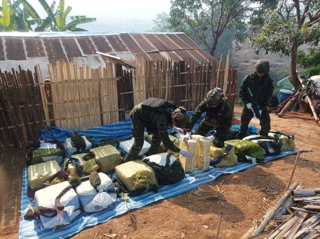 จนกระทั่งวันที่ 11 เมษายน 2569 เวลา 08.30 น.ชุดปฏิบัติการ ลาดตระเวนพิสูจน์ทราบ บริเวณพื้นที่ต้องสงสัยโดยรอบ ตรวจพบบุคคลชาย จำนวน 1 คน และ บุคคลหญิง 1 คน อยู่ภายในบริเวณที่พักชั่วคราว (กระท่อม) ท้ายหมู่บ้านเปียงหลวง ตำบลเปียงหลวง อำเภอเวียงแหง จังหวัดเชียงใหม่ จนท.จึงได้แสดงตัวเพื่อขอตรวจค้น แต่บุคคลดังกล่าว เมื่อเห็นเจ้าหน้าที่ทหาร ใช้ความชำนาญในภูมิประเทศสามารถหลบหนีไปได้ จึงเข้าตรวจสอบพื้นที่ดังกล่าว พบกระสอบดัดแปลงเป็นเป้สะพายหลัง จำนวน 20 กระสอบ ซุกซ่อนภายในเต้นท์นอนสีลายพราง ภายในบรรจุยาเสพติดให้โทษประเภท 1 (ยาบ้า) รวมจำนวน 3,993,400 เม็ด และ ยาเสพติดให้โทษประเภท 2 (ฝิ่นดิบ) จำนวน 3 ก้อน รวมน้ำหนัก ประมาณ 4.8 กิโลกรัม