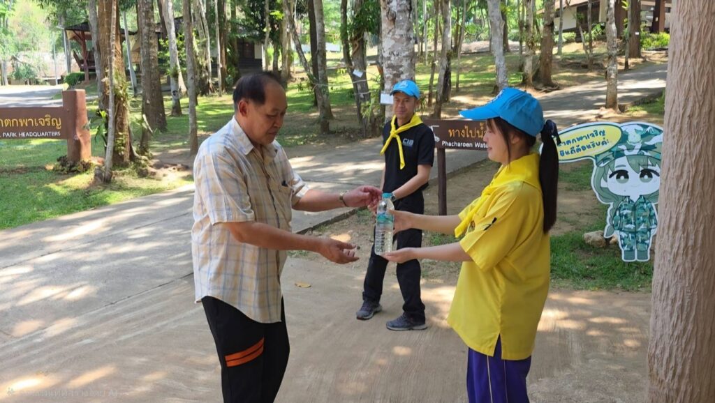 โดยได้ร่วมกันมอบน้ำดื่มและขนมให้แก่นักท่องเที่ยวทั้งชาวไทยและต่างชาติ ณ อุทยานแห่งชาติน้ำตกพาเจริญ อำเภอพบพระ จังหวัดตาก พร้อมทั้งร่วมกันเก็บขยะบริเวณโดยรอบแหล่งท่องเที่ยว เพื่อส่งเสริมความสะอาด ความเป็นระเบียบเรียบร้อย และสร้างจิตสำนึกในการอนุรักษ์ทรัพยากรธรรมชาติ