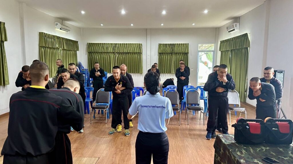 เมื่อวันที่ 11 มิถุนายน 2568 โรงพยาบาลค่ายกาวิละ จัดชุด ทีม ครู ก. ได้ดำเนินการอบรม และให้ความรู้ “การปฐมพยาบาลเบื้องต้น และการช่วยฟื้นคืนชีพ CPR” และการปฐมพยาบาลภาวะทางเดินหายใจถูกอุดกั้น ให้กับกองพลทหารราบที่ 7 จำนวน 30 นาย เพื่อเพิ่มทักษะ ความชำนาญ และขีดความสามารถในการช่วยเหลือตนเองและเพื่อนร่วมงาน หากเกิดเหตุระหว่างปฏิบัติหน้าที่ก็จากสามารถช่วยกันปฐมพยาบาลเบื้องต้นได้ และยังสามารถช่วยเหลือประชาชนในสถานการณ์วิกฤตต่างๆ ได้อย่างรวดเร็ว และปลอดภัย ณ ห้องระวังเมือง 4 บก.พล.ร.7 จังหวัดเชียงใหม่