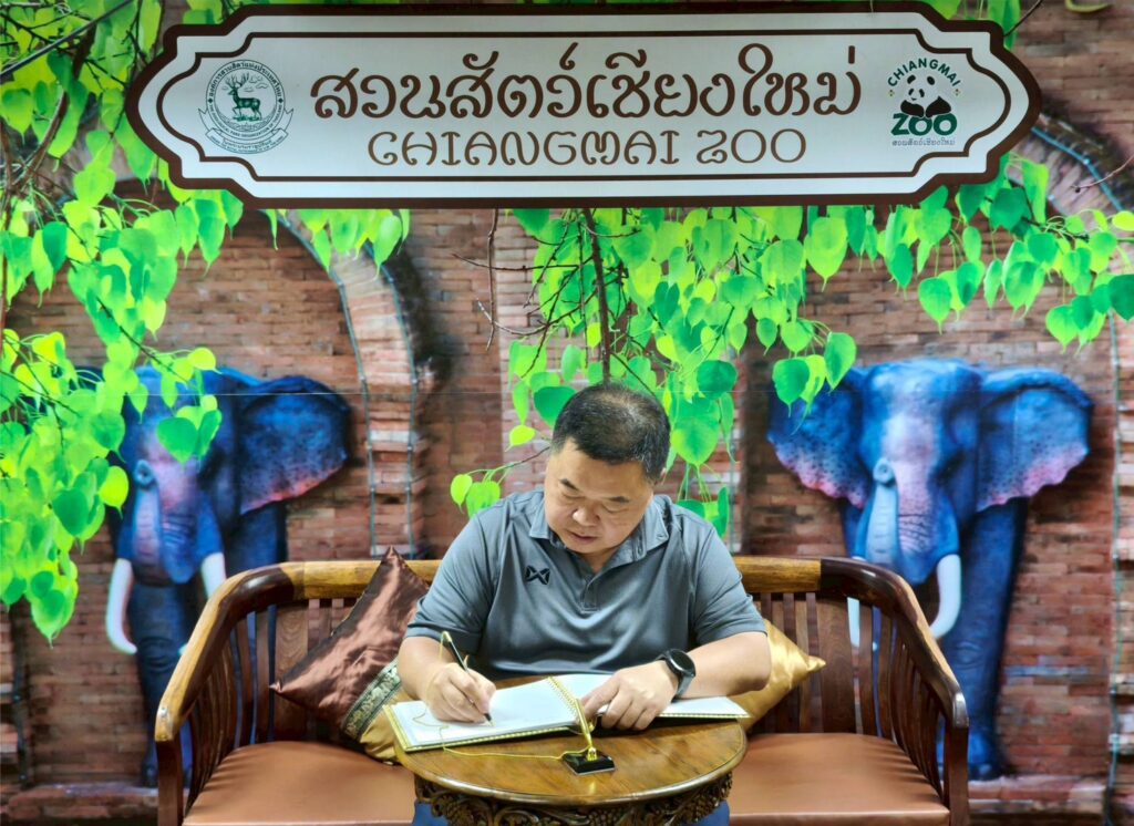 “ขอเป็นกำลังใจให้ท่าน ผอ. สวนสัตว์เชียงใหม่ ตลอดจนพนักงานทุกคนมีสุขภาพแข็งแรง มีความสุขในการทำงานเพื่อให้การบริการแก่พี่น้องประชาชนตลอดไป”จากนั้นได้ลงนามชื่อ-สกุล และตำแหน่งผู้ช่วยรัฐมนตรีว่าการกระทรวงพัฒนาสังคมและความมั่นคงของมนุษย์ ทิ้งท้ายก่อนกลับ