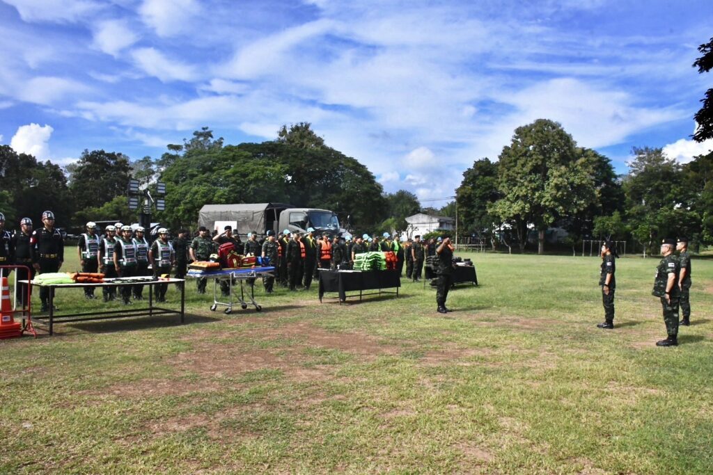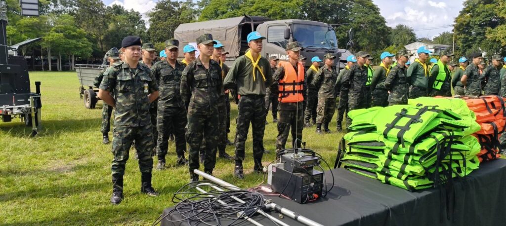 เมื่อวันที่ 12 กันยายน 2568 ศูนย์บรรเทาสาธารณภัยมณฑลทหารบกที่ 34 เตรียมความพร้อม กำลังพล เครื่องมือ และอุปกรณ์บรรเทาสารธารณภัย ของ ชุดปฏิบัติการบรรเทาสาธารณภัย และจิตอาสาภัยพิบัติ มณฑลทหารบกที่ 34 ในการเฝ้าระวัง ฝนตกหนัก, น้ำท่วมฉับพลัน, น้ำป่าไหลหลาก, ดินโคลนถล่ม และน้ำท่วมขัง ในพื้นที่จังหวัดพะเยา เพื่อให้มีความพร้อมในการช่วยเหลือประชาชน เมื่อมีการร้องขอ ณ กองบัญชาการมณฑลทหารบกที่ 34 ค่ายขุนเจืองธรรมิกราช อำเภอเมือง จังหวัดพะเยา