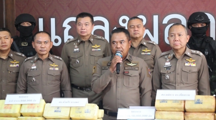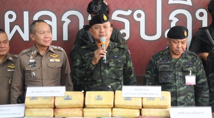 (มีคลิป)เชียงใหม่-ผบช.ภ.5 บูรณาการร่วมกับหน่วยงานที่เกี่ยวข้อง แถลงผลการจับกุมคดียาเสพติด รายสำคัญ 4 คดี ผู้ต้องหา 10 ราย ยึดของกลางยาบ้า จำนวน 13,468,000 เม็ด