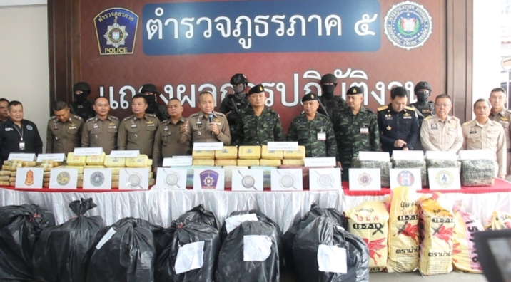 เมื่อวันที่ 12 พฤศจิกายน 2568 เวลา 11.00 น.ตำรวจภูธรภาค 5 โดย พล.ต.ท.กฤตธาพล ยี่สาคร ผบช.ภ.5, พล.ต.ต.พิเชษฐ จีระนันตสิน, พล.ต.ต.นพดล กรุงไกร, พล.ต.ต.ธนะรัชต์ ชุ่มสวัสดิ์, พล.ต.ต.ธวัชชัย พงษ์วิวัฒนชัย, พล.ต.ต.สุทธิพงษ์ เป๊กทอง, พล.ต.ต.วรพงศ์ คำลือ รอง ผบช.ภ.5 พล.ต.ต.จิตร์พิสุทธิ์ อิ่มสงวน ผบก.สส.ภ.5, พล.ต.ต.มานพ เสนากูล ผบก.ภ.จว.เชียงราย, พล.ต.ต.ยุทธนา แก่นจันทร์ ผบก.ภ.จว.เชียงใหม่, พล.ต.ต.พงษ์เดช คำใจสู้ ผบก.ภ.จว.แพร่ และ พล.ต.ต.ภูมิปัญญ์ญา นวตระกูลพิสุทธิ์ ผบก.ภ.จว.ลำปางฝ่ายทหาร นบ.ยส.35, พล.ท. ชายแดน กฤษณสุวรรณ แม่ทัพน้อยภาคที่ 3 ผู้แทน พล.ท. วรเทพ บุญญะ มทภ.3 และ สำนักงาน ปปส.ภาค 5 ร่วมกันแถลงผลการจับกุมคดียาเสพติดรายสำคัญ 4 คดี ตามนโยบายรัฐบาลดังนี้