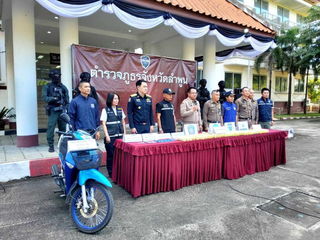 ลำพูน – ตำรวจภูธรจังหวัดลำพูน ร่วมกับจังหวัดลำพูน ร่วมกันแถลงข่าวการจับผู้ค้ายาเสพติดรายสำคัญ โดยมีของกลางยาบ้าจำนวนมาก