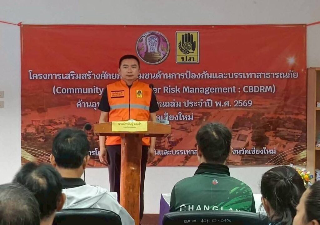 วันที่ 12 มีนาคม 2569 เวลา 08.30 น.นายจักรพันธ์ุ ทองอ่ำ นายอำเภอแม่แตง เป็นประธานเปิดโครงการเสริมสร้างศักยภาพชุมชนด้านการป้องกันและบรรเทาสาธารณภัย เพื่อส่งเสริมกระบวนการมีส่วนร่วมในการจัดการความเสี่ยงจากสาธารณภัยภาคประชาชน ในชุมชนหมู่บ้านในพื้นที่เสี่ยงให้มีกลไกการบริหารจัดการความเสี่ยงจากสถานการณ์อย่างเป็นระบบ โดยมีกลุ่มเป้าหมายเป็นประชาชนในพื้นที่ จำนวน 50 คน ณ ห้องประชุมองค์การบริหารส่วนตำบลกื้ดช้าง ในการนี้ นายวัฒนา สาคร หัวหน้าสำนักงานป้องกันและบรรเทาสาธารณภัยจังหวัดเชียงใหม่ ได้ให้เกียรติเป็นวิทยากร ในการอบรมให้ความรู้แก่ประชาชนที่อยู่ในพื้นที่เสี่ยง