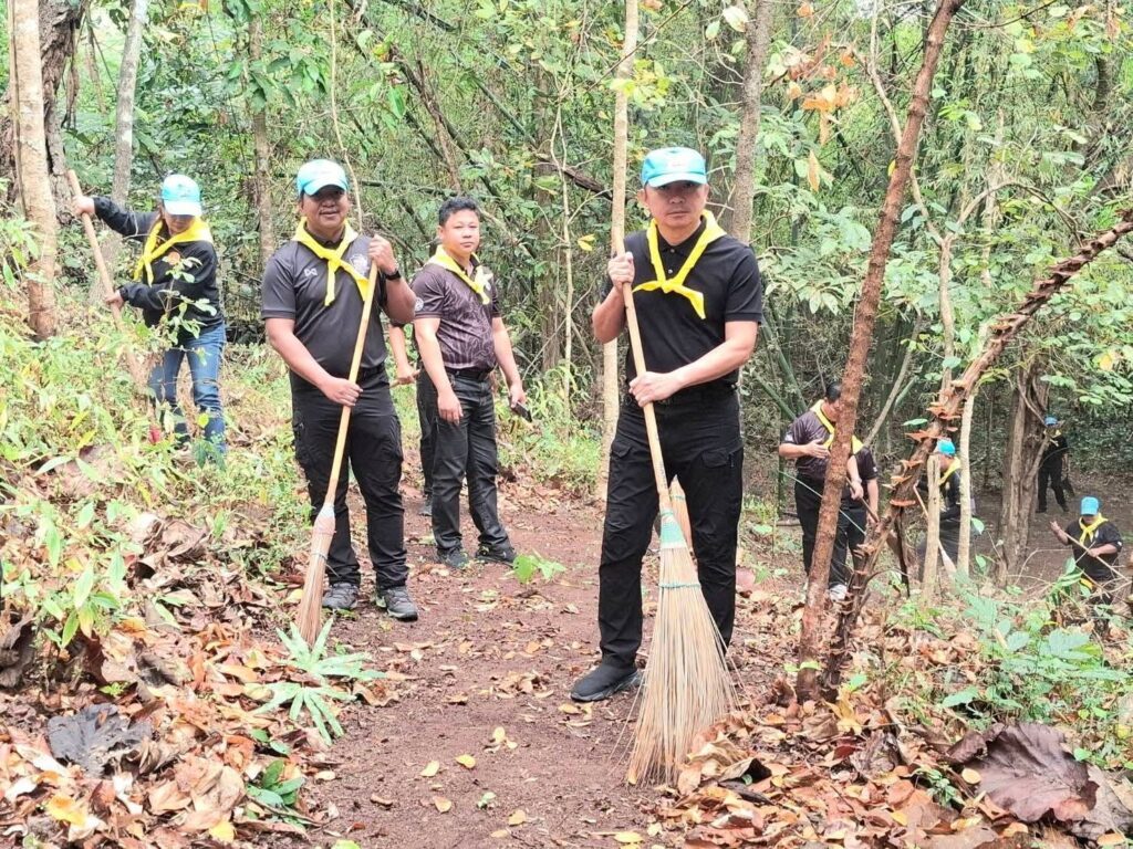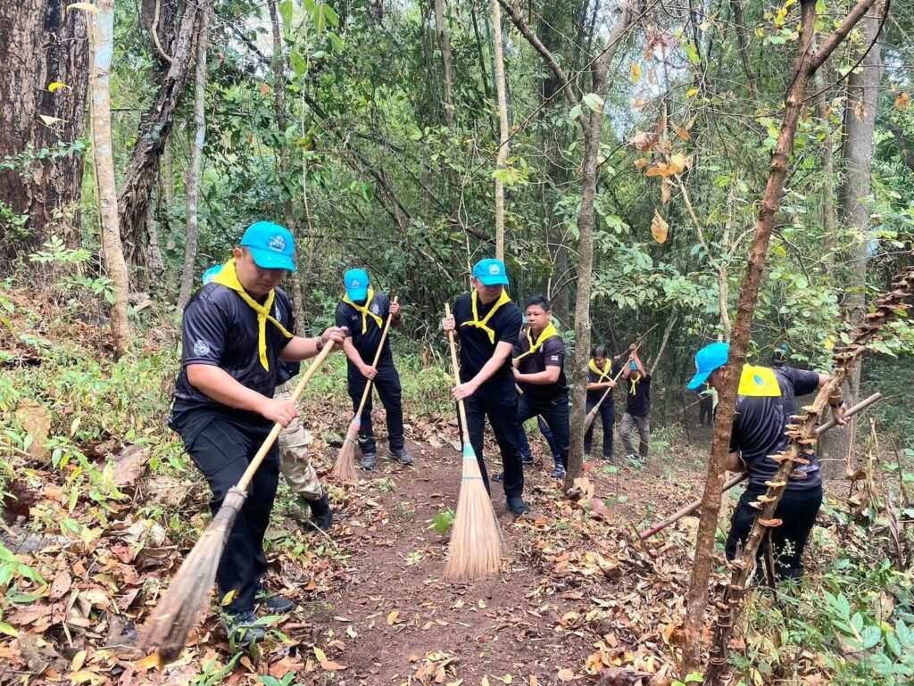 เชียงใหม่-ศูนย์อำนวยการจิตอาสาพระราชทาน อำเภอแม่แตงจัดกิจกรรมจิตอาสาทำแนวกันไฟ ณ พื้นที่ป่าสงวนด้านหลังวัดถ้ำศรีนิล หมู่ที่ 1 บ้านแม่โจ้ ตำบลบ้านเป้า อำเภอแม่แตง จังหวัดเชียงใหม่