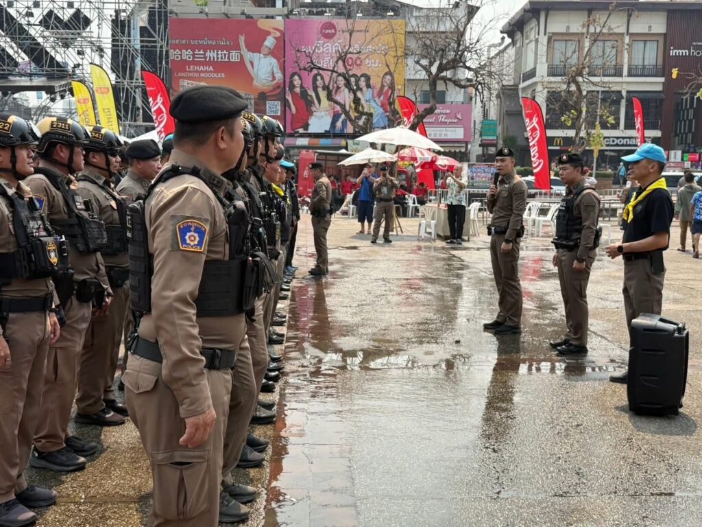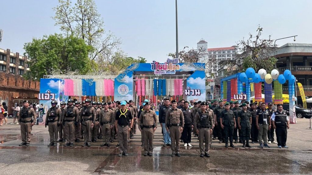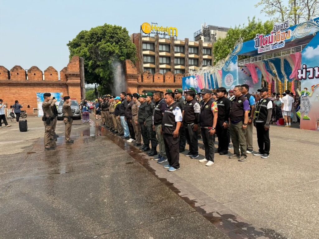 สภ.เมืองเชียงใหม่ จ.เชียงใหม่ประชุมปล่อยแถวเจ้าหน้าที่ตำรวจออกดูแลรักษาความปลอดภัยและอำนวยความสะดวกการจราจร แก่ประชาชนและนักท่องเที่ยว เนื่องในวันสงกรานต์ประจำปี 2569
