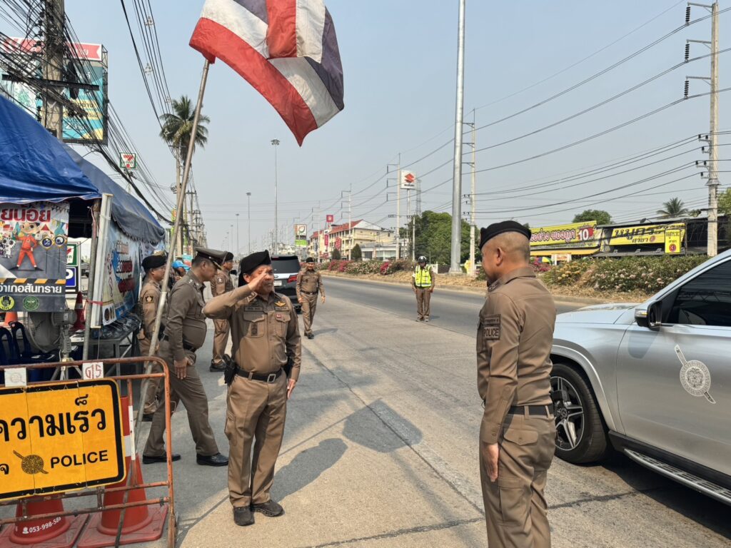 เชียงใหม่-ผบช.ภาค 5 พร้อมด้วย ผบก.ภ.จว.เชียงใหม่ลงพื้นที่ตรวจเยี่ยมจุดอำนวยความสะดวกด้านการจราจร เพื่อป้องกันอุบัติเหตุ และบริการประชาชน ในพื้นที่ สภ.สันทราย จว.เชียงใหม่
