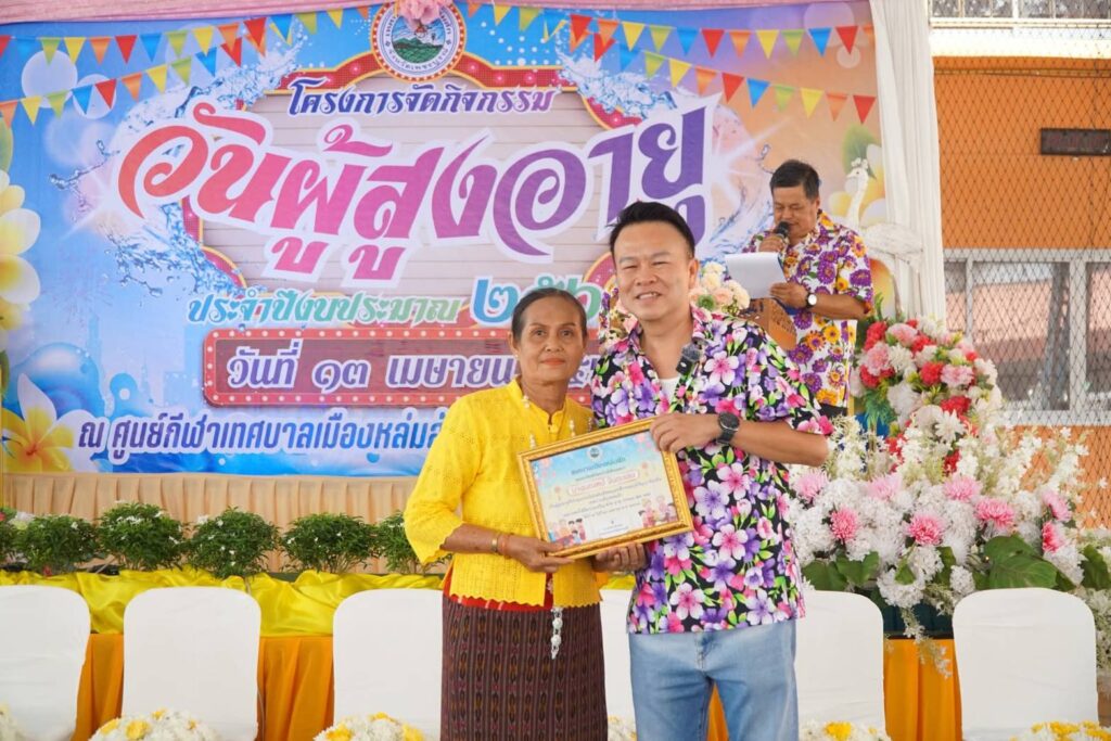 วันจันทร์ที่ 13 เมษายน 2569 สืบสานประเพณี รดน้ำขอพรผู้สูงอายุ ในช่วงเช้าเวลา 10.00 น. นายกิตติ พั้วช่วย นายกเทศมนตรีเมืองหล่มสัก เป็นประธานในพิธีเปิด “โครงการจัดกิจกรรมวันผู้สูงอายุ ประจำปี 2569” พร้อมร่วมกิจกรรมรดน้ำดำหัวขอพรผู้สูงอายุ ณ โดมกีฬาข้างสำนักงานเทศบาลเมืองหล่มสัก เพื่อความเป็นสิริมงคลและรณรงค์ให้ความสำคัญกับผู้สูงอายุ
