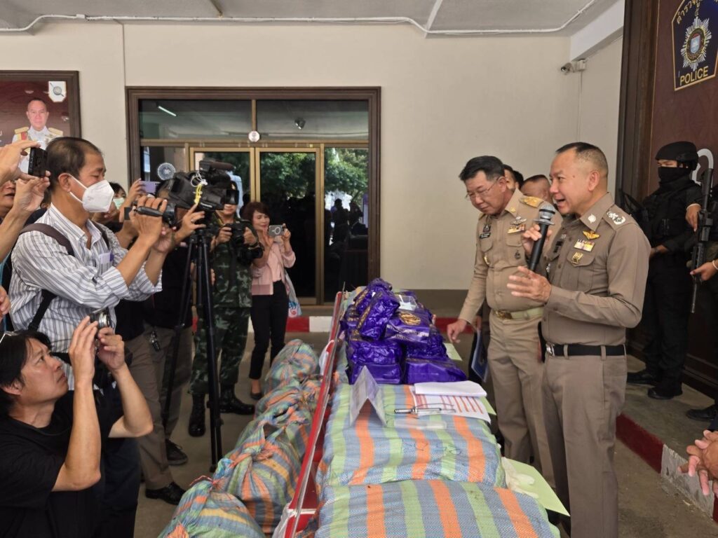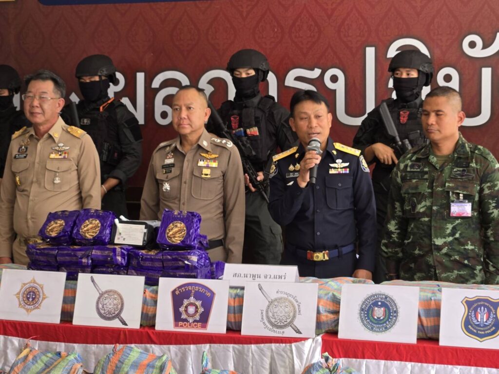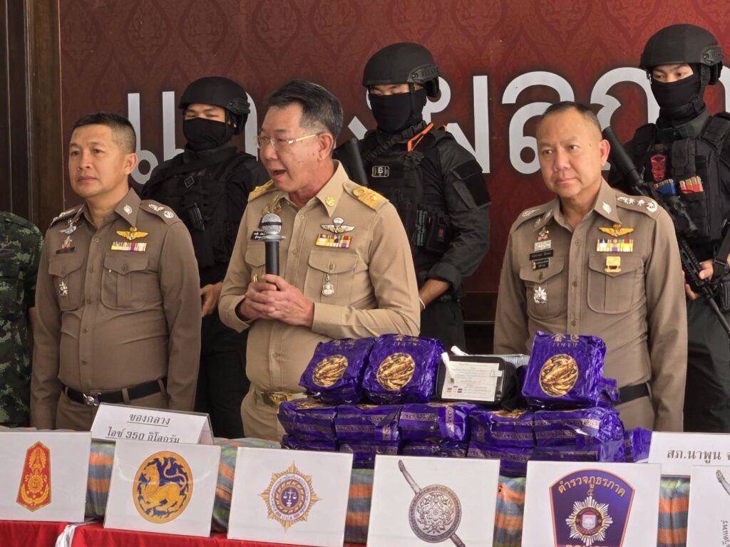 เชียงใหม่-ผบช.ภ. 5 แถลงข่าวจับกุมยาไอซ์ 350 กิโลกรัม ที่ด่านตรวจดงยาง สภ.นาพูน อ.วังชิ้น จว.แพร่ พร้อมผู้ต้องหา 3 ราย