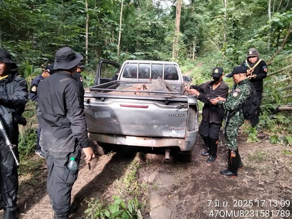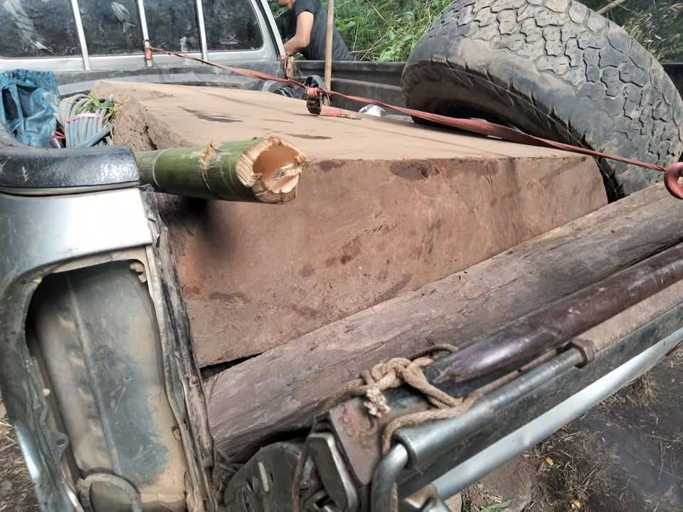 ตรวจยึดไม้ประดู่แปรรูป 1 แผ่น ปริมาตร 0.56 ลูกบาศก์เมตร พร้อมรถยนต์โตโยต้ารีโว่ สีบรอนซ์ ไม่ติดแผ่นป้ายทะเบียน จำนวน 1 คัน ในพื้นที่ป่าบ้านกูเตอร์ทะ ต.สามหมื่น