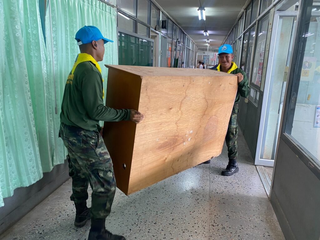 พะเยา-จิตอาสาพระราชทาน เราทำความดีด้วยหัวใจศอ.จอส.พระราชทาน มทบ.34 จัดกำลังพล จิตอาสาพระราชทาน ร่วมขนย้ายอุปกรณ์ ณ รพ.พะเยา