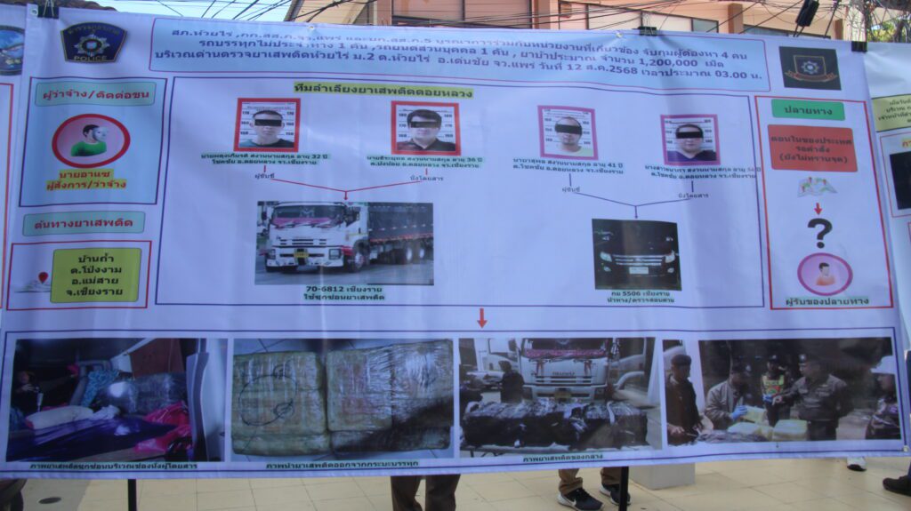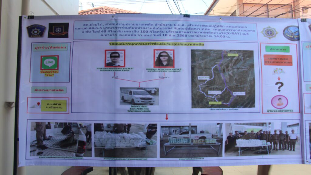 เมื่อวันที่ 13 สิงหาคม 2568 ที่กองบัญชาการตำรวจภูธรภาค 5 พล.ต.ท.กฤตธาพล ยี่สาคร ผู้บัญชาการตำรวจภูธรภาค 5,พล.ต.ต.พิเชษฐ์ จิระนันตสิน รอง ผบช.ภ.5 ,พล.ต.ต.ธนะรัชต์ ชุ่มสวัสดิ์ รอง ผบช.ภ.5 ,พล.ต.ต.นพดล กรึงไกร รอง ผบช.ภ.5 ,พล.ต.ต.วรพงศ์ คำลือ ผบก.สส.ภ.5 ,พล.ต.ต.ยุทธนา แก่นจันทร์ ผบก.ภ.จว.เขียงใหม่ ,พล.ต.ต.มานพ เสนากูล ผบก.ภ.จว.เขียงราย ,พล.ต.ต.พงษ์เดช คำใจสู้ ผบก.ภ.จว.แพร่ พร้อมเจ้าหน้าที่ที่เกี่ยวข้อง ร่วมกันแถลงข่าวการจับกุมขบวนการค้ายาเสพติดรายสำคัญในพื้นที่ภาคเหนือ สามารถยึดยาเสพติดของกลางได้จำนวนมาก รวมมูลค่าหลายร้อยล้านบาท